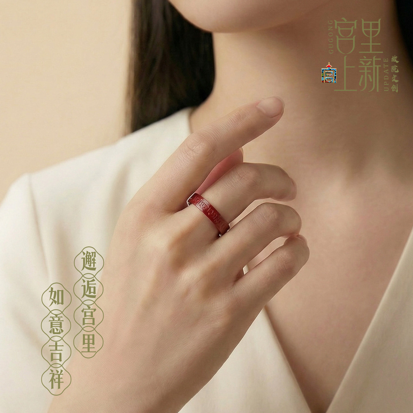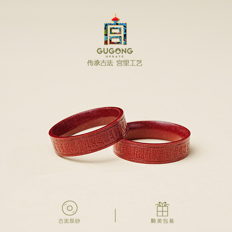 宫里上新朱砂戒指男六字真言素圈男士红色指环手饰生日本命年礼物