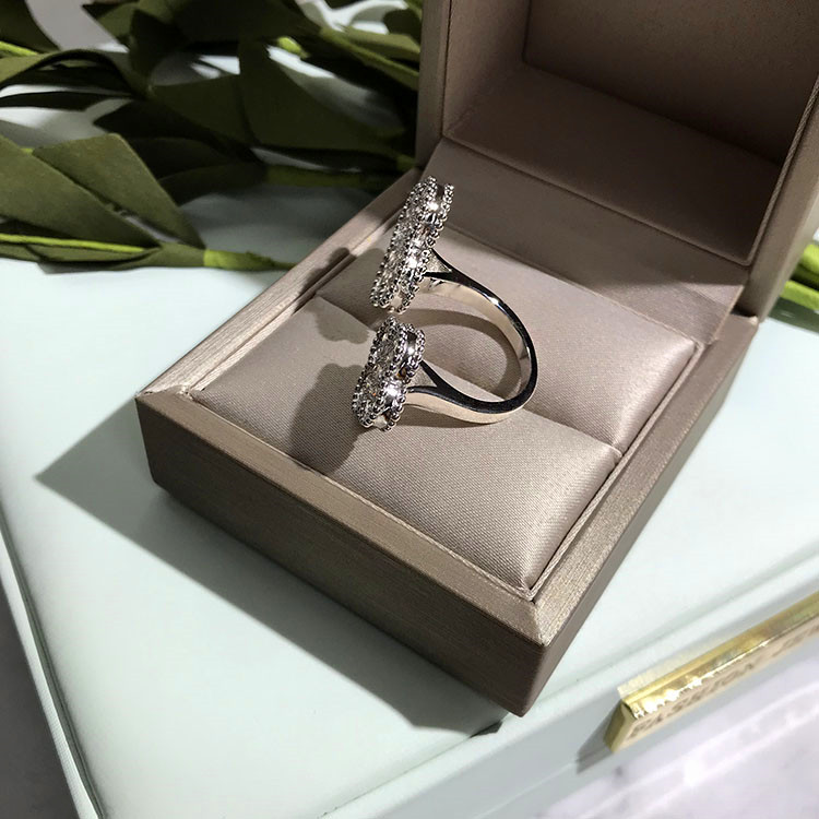 日韩S925纯银满钻双花戒指女开口大小花朵指间戒情侣网红直播饰品