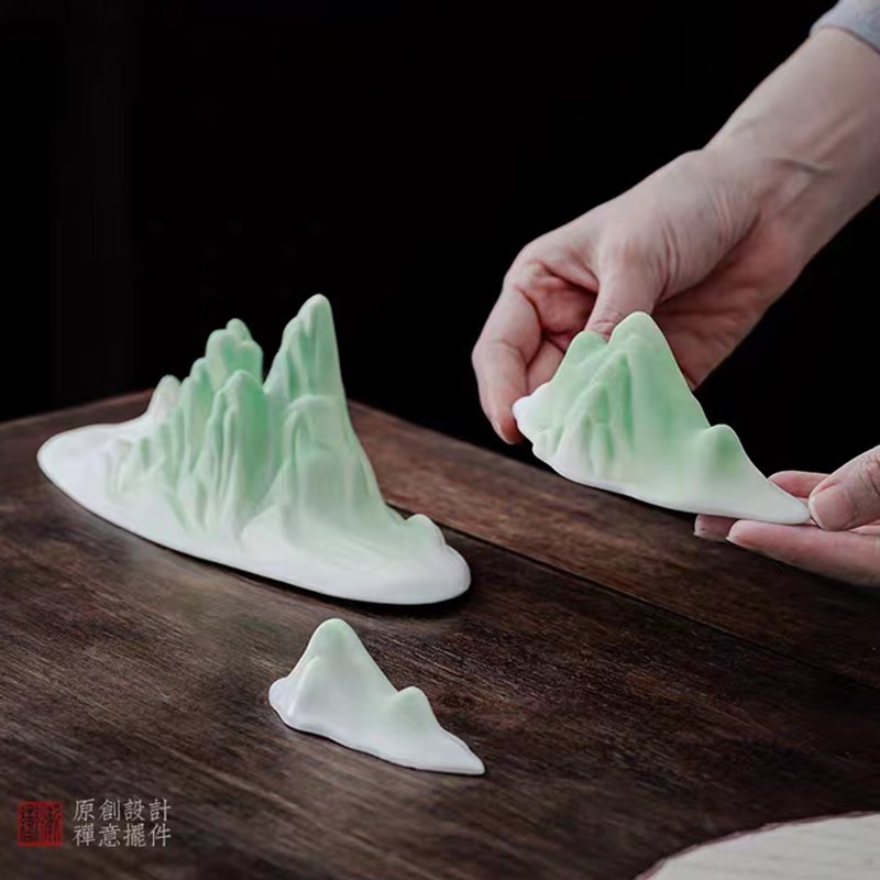 陶瓷假山微景观鱼缸装饰沙盘造景新中式客厅玄关创意江山家居摆件
