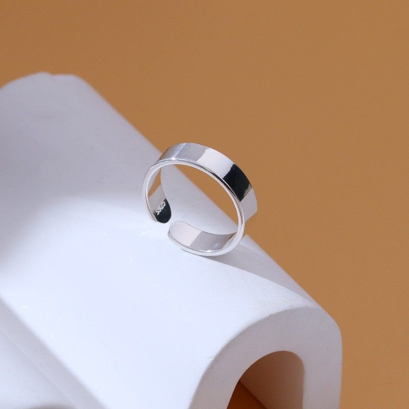 古罗珠宝通体S925银简约冷淡风光板戒指 韩版光面素圈男女士指环