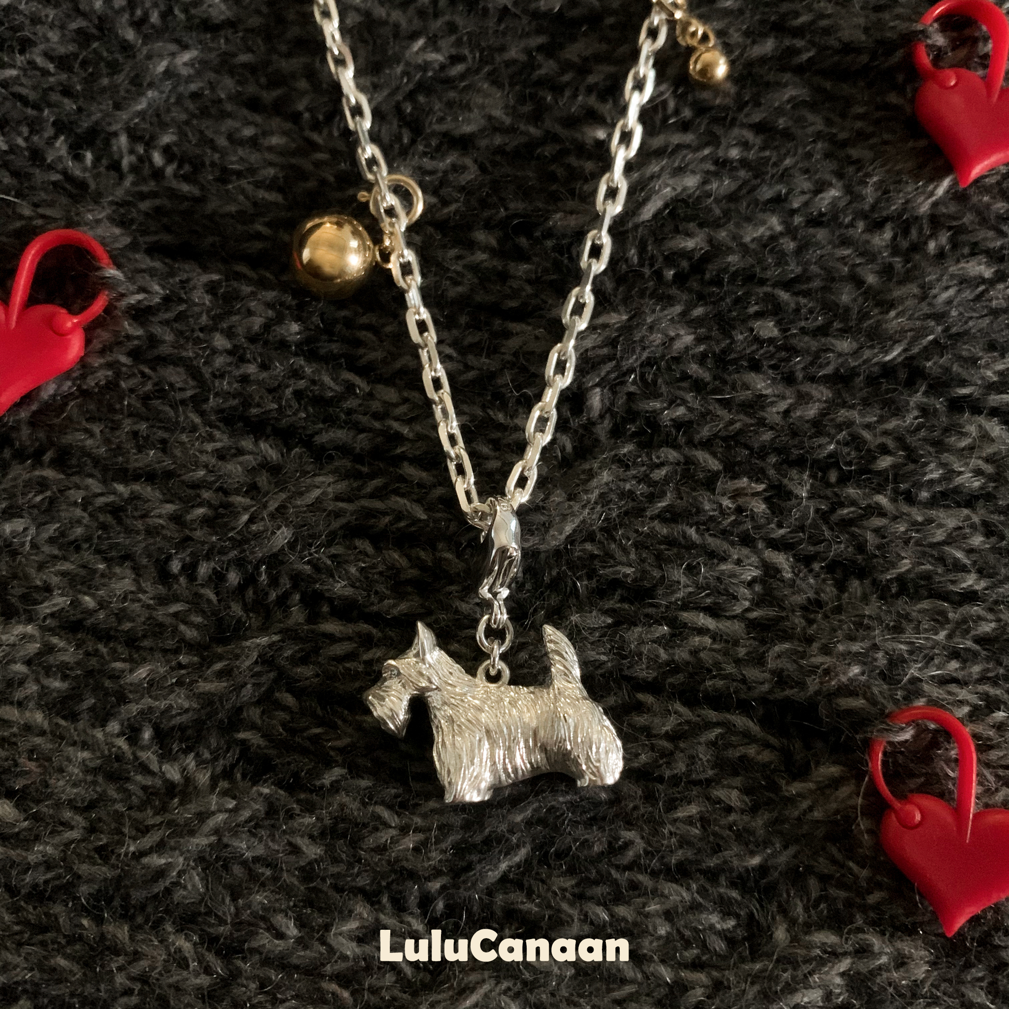 LuluCanaan西高地小狗纯银吊坠毛衣链金球挂件可拆卸原创小众设计