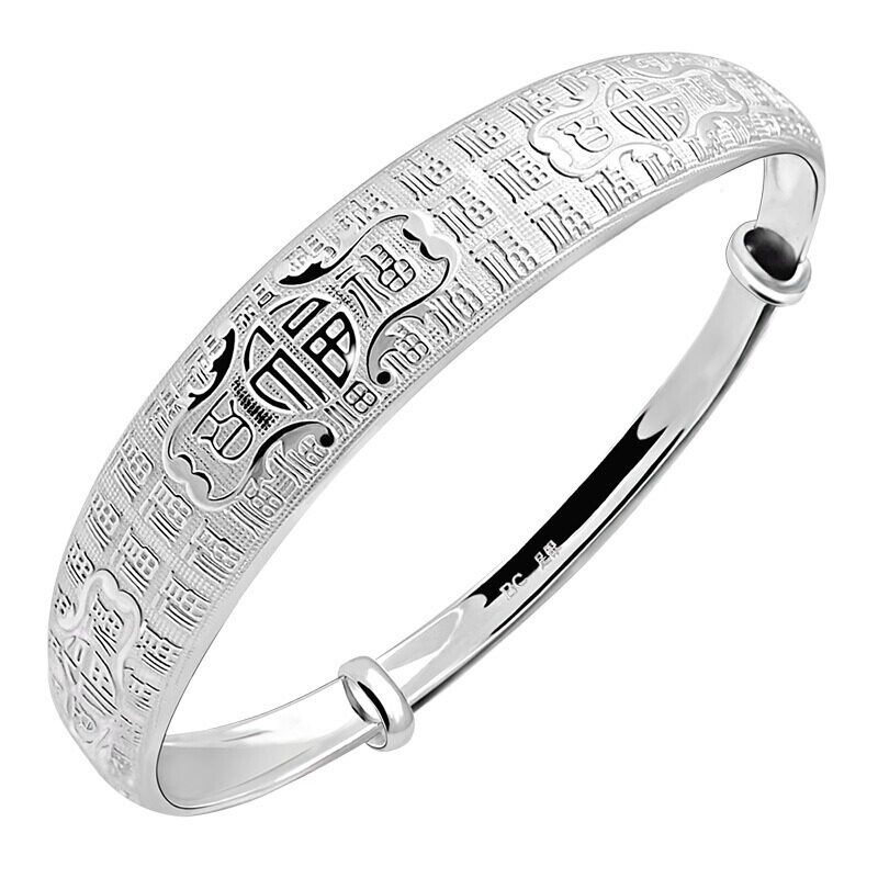 纯银9999百福手镯女银镯子足银中老年人手环送妈妈长辈母亲节礼物