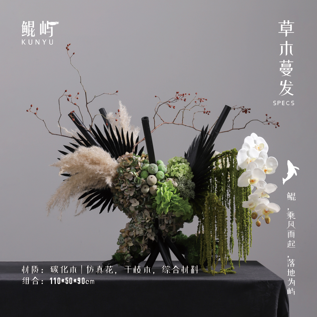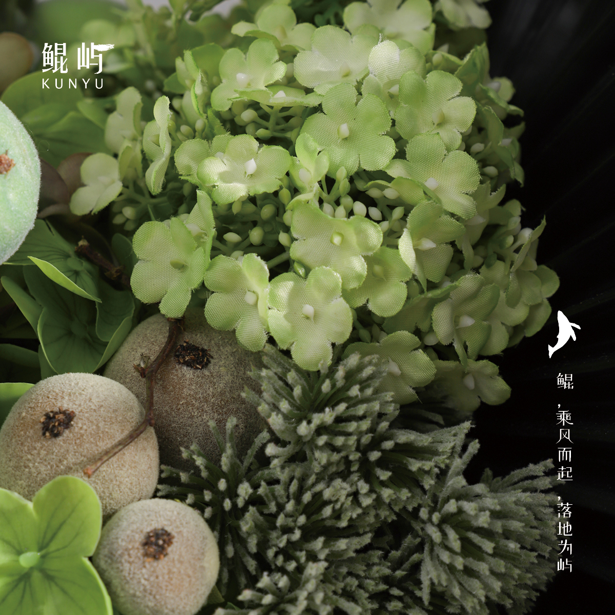 鲲屿 新中式轻奢绿色艺术花艺【草木蔓发】售楼处样板间酒店摆件