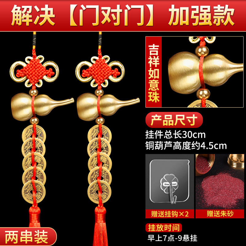 五帝钱门对门铜葫芦真品纯铜摆件人财两旺吉祥结挂件入户镇宅化解