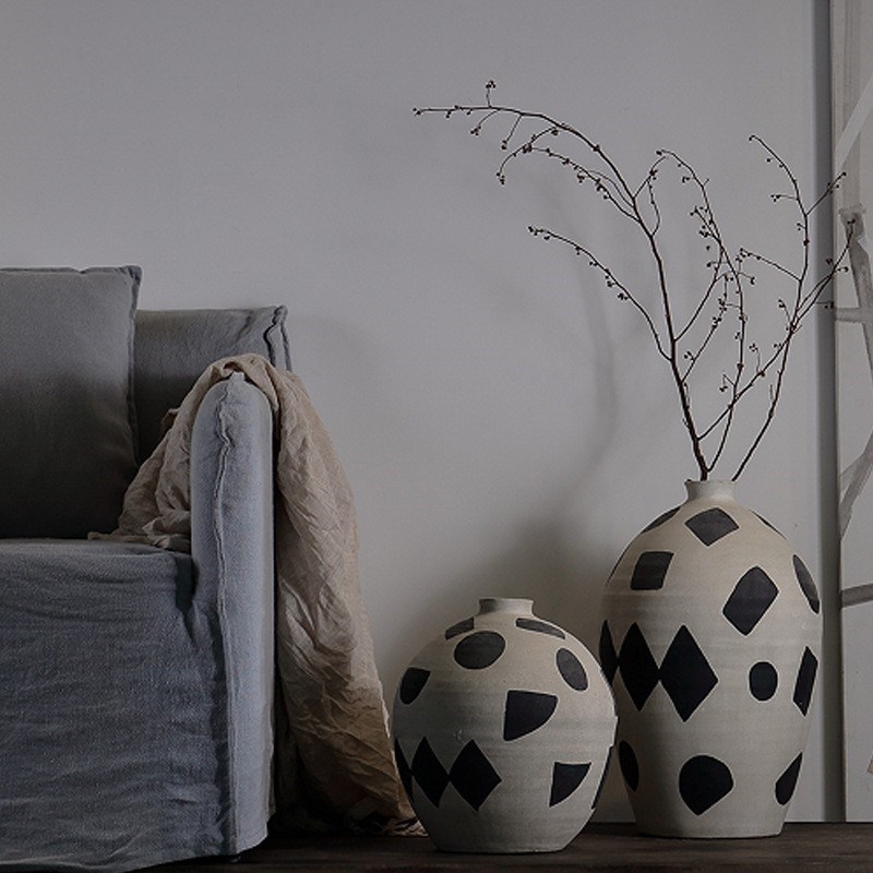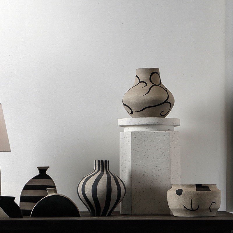 北欧侘寂风手工陶瓷花瓶r样板间民宿干花花器软装桌面玄关饰品摆