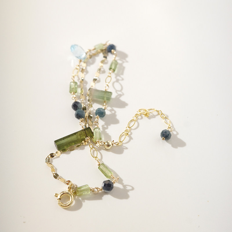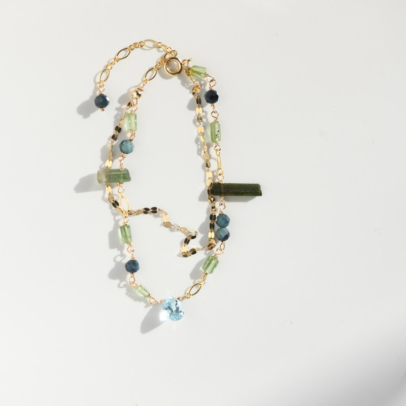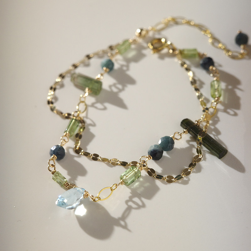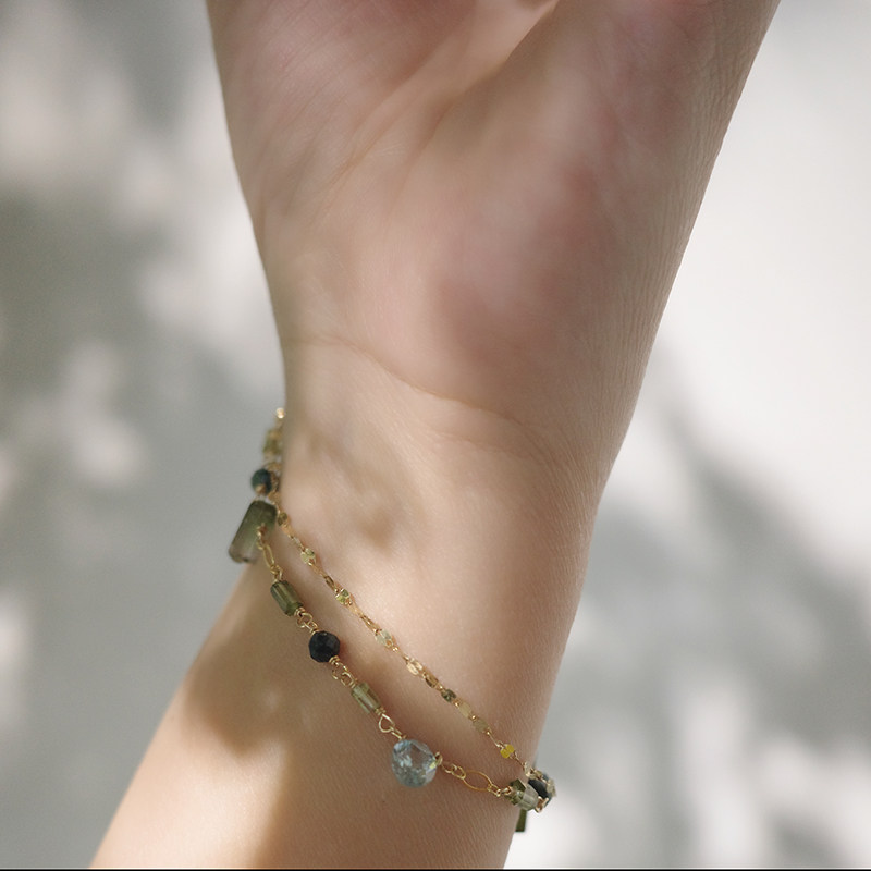 10月诞生石设计感绿碧玺原矿美国14k注金ins双层闪耀原创幸运手链