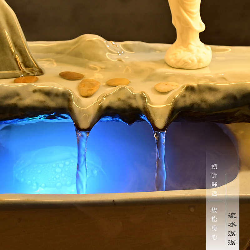 桌面假山流水摆件创意客厅造景装饰台灯雾化加湿乔迁门店开业礼品