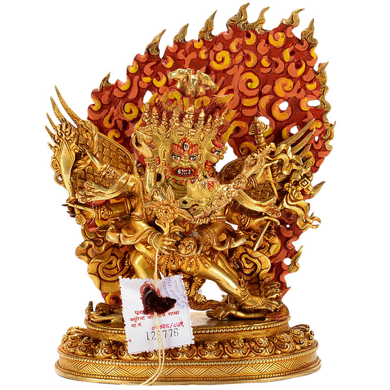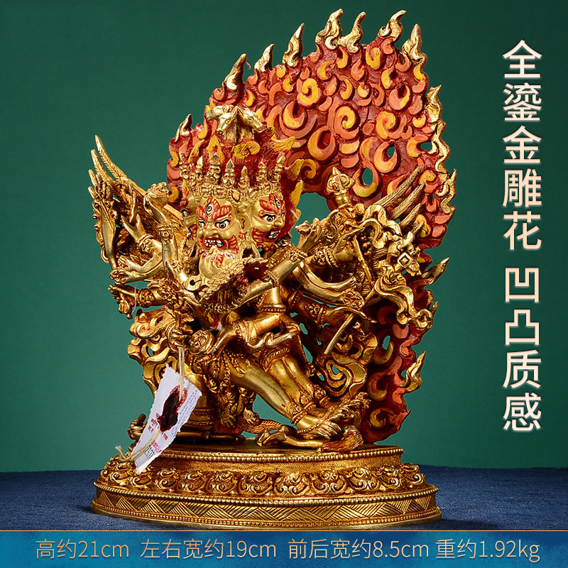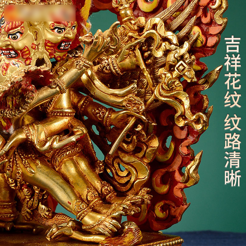 尼泊尔手工马头明王全鎏金铜铜像马头金刚居家桌面摆件7寸