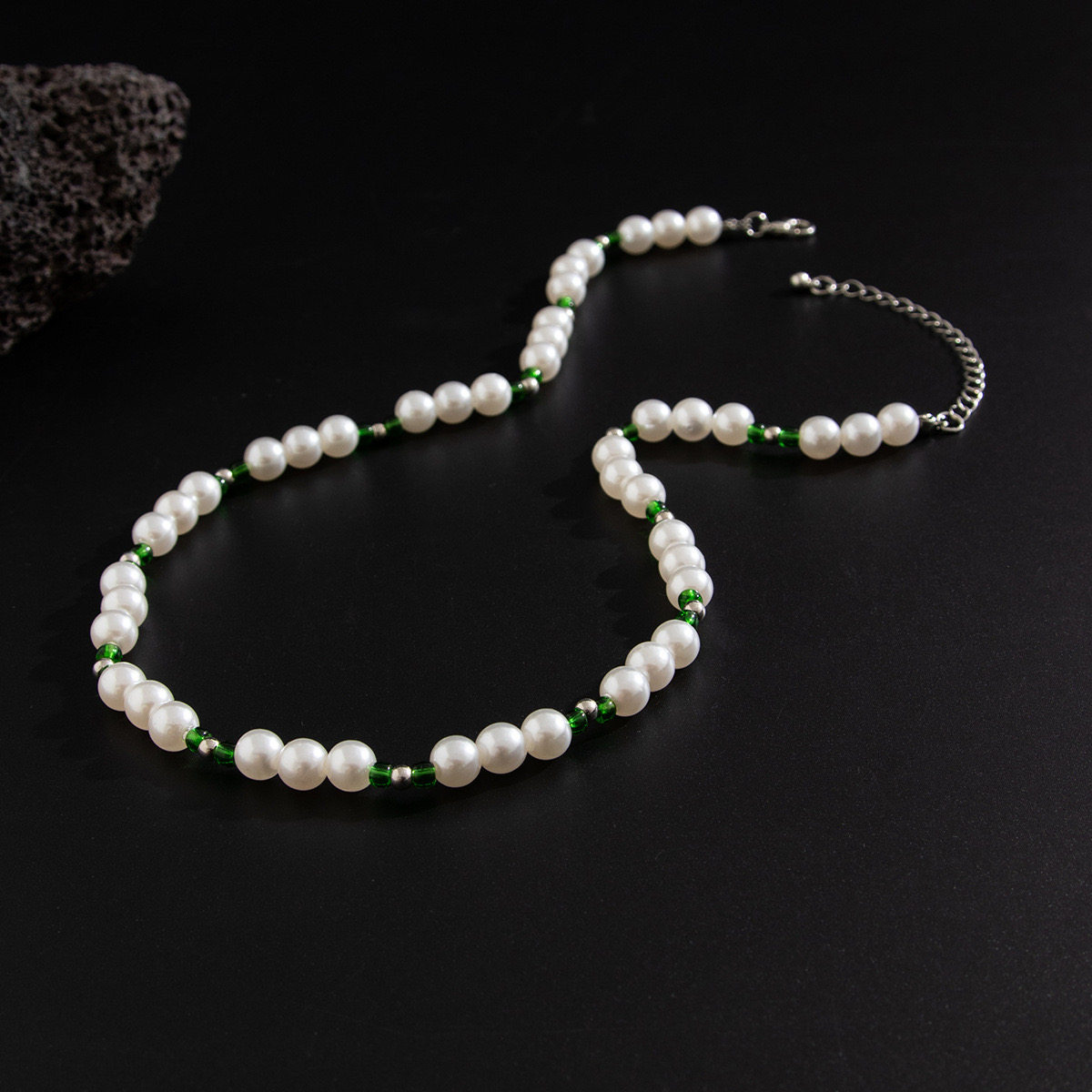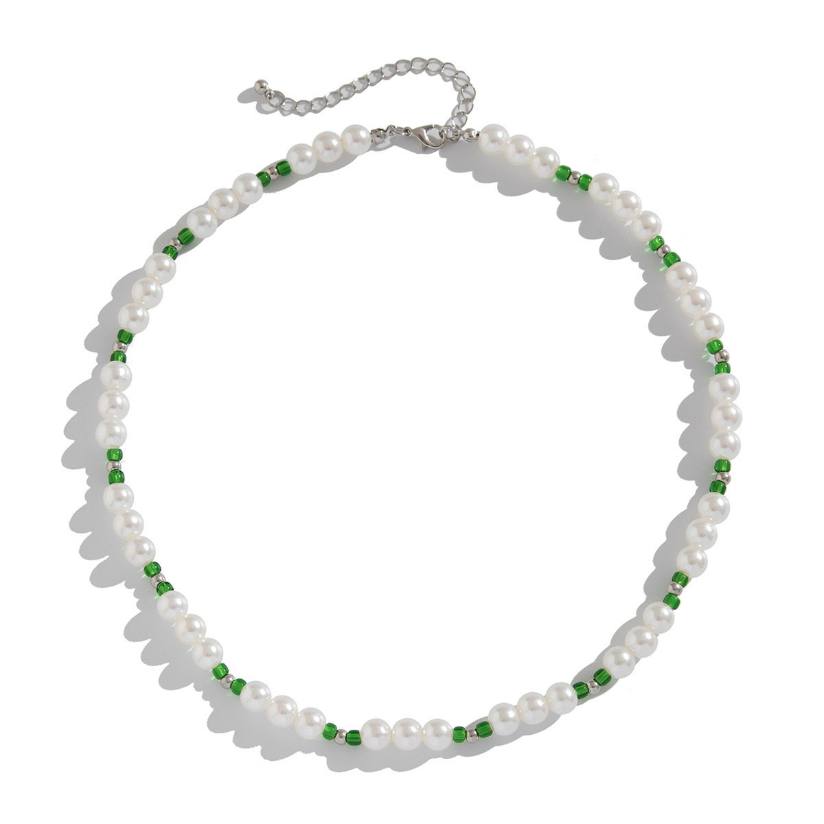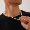新款绿色米珠珍珠项链男潮高级感欧美风嘻哈小众设计感锁骨链配饰