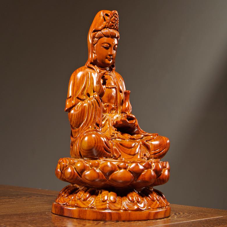 花梨木雕观音菩萨佛像摆件实木观世音家居客厅玄关摆设装饰工艺品
