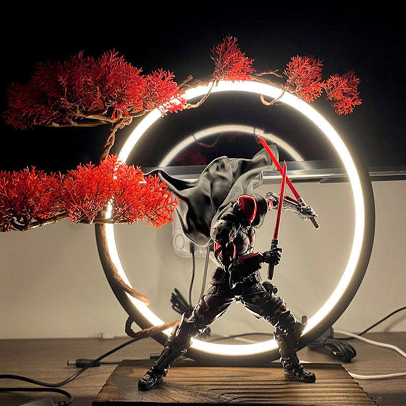 高大模型手办展示灯无极调光大红灯圈USB接口红异端拼装效果摆件