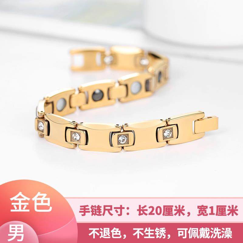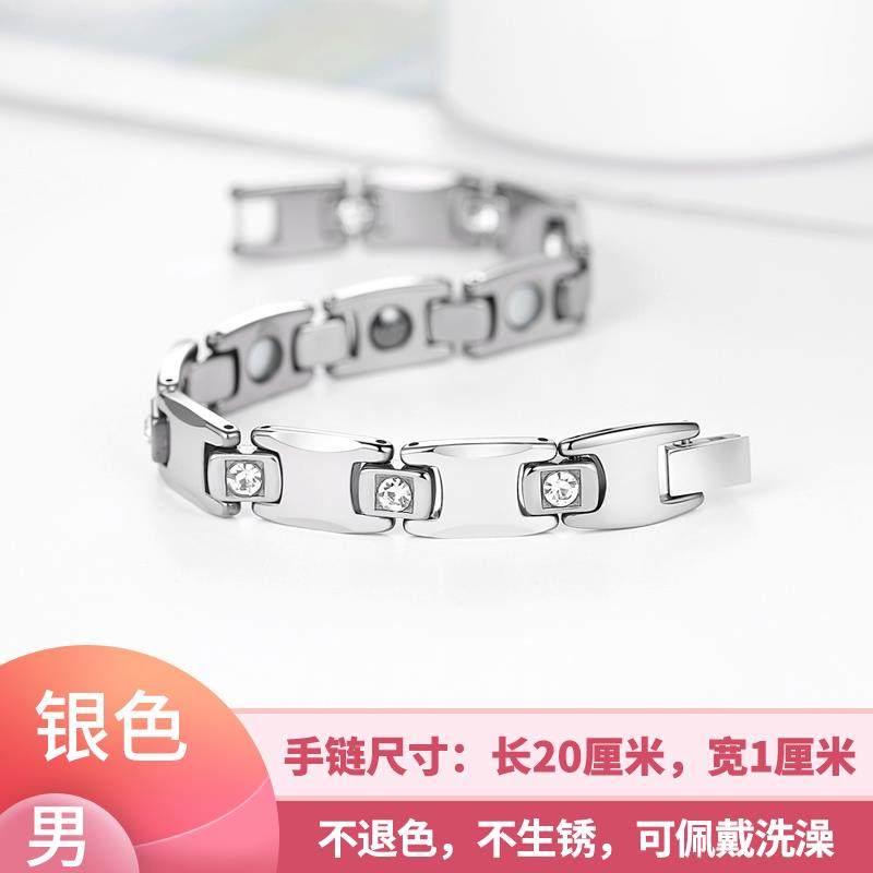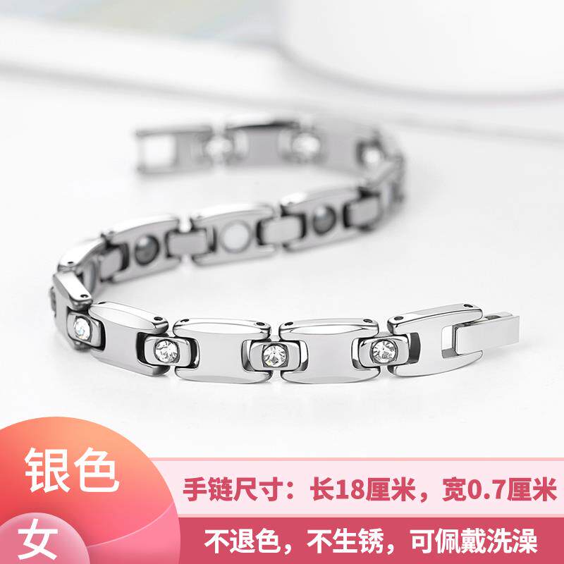 高档情侣手链玫男瑰金钛钢防辐射磁锗石保健疗抗疲手劳饰品女银色