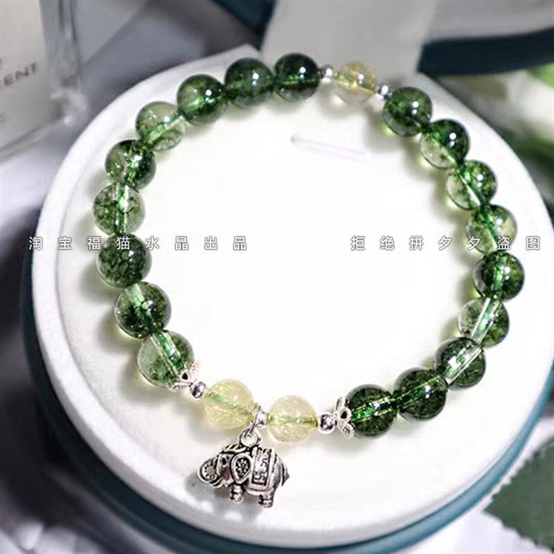 绿幽灵爆花晶绿水晶金发晶手链女绿色清新招财猫吞金兽转运手串女