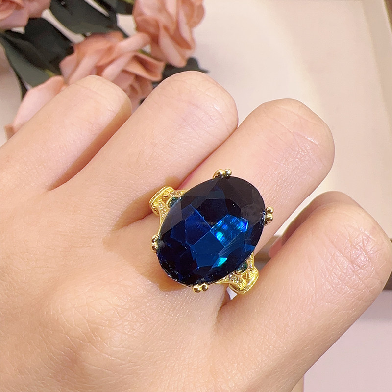 Youngwish欧美时尚热卖订婚求婚鹅蛋钻戒指 电镀18k黄金指环手饰