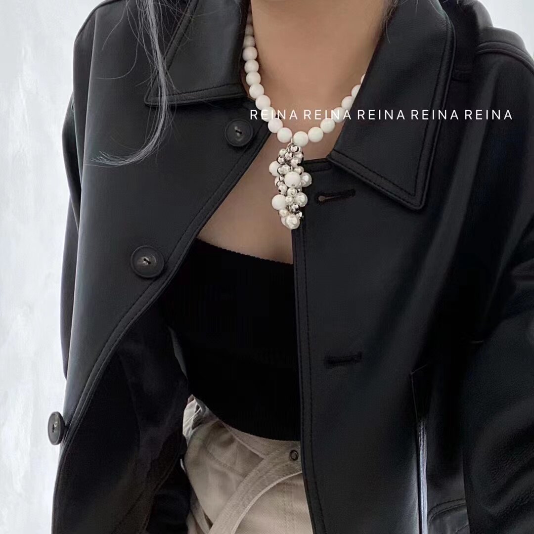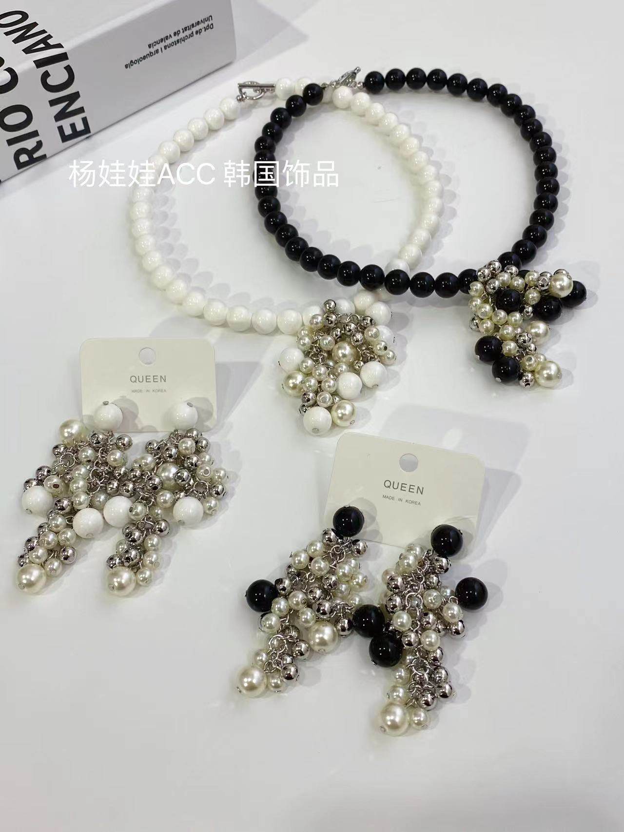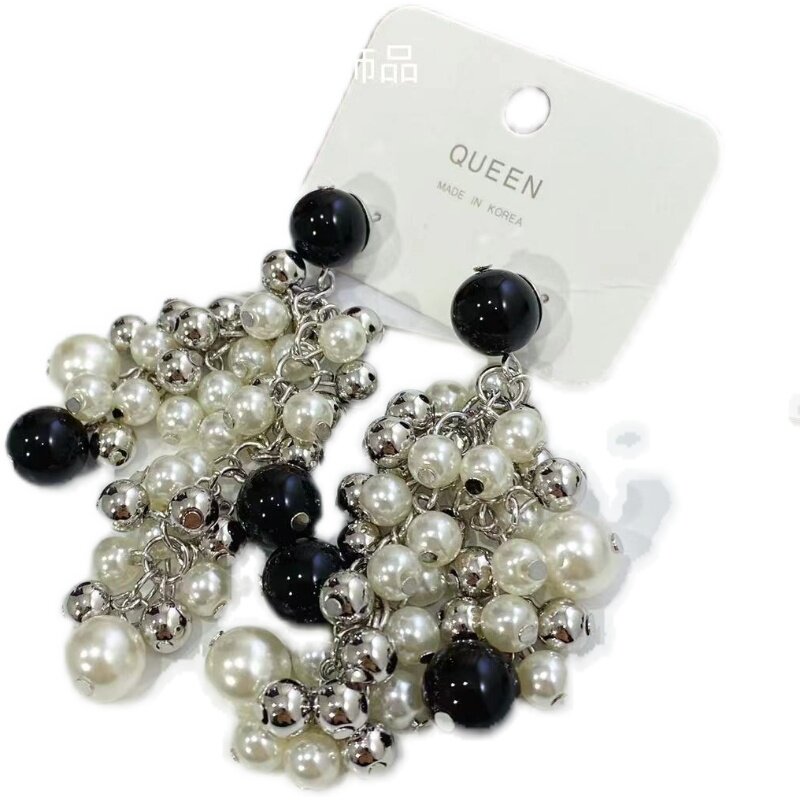 韩国东大门黑玛瑙珠珠项链串珠耳环夸张款黑白色锁骨链531701