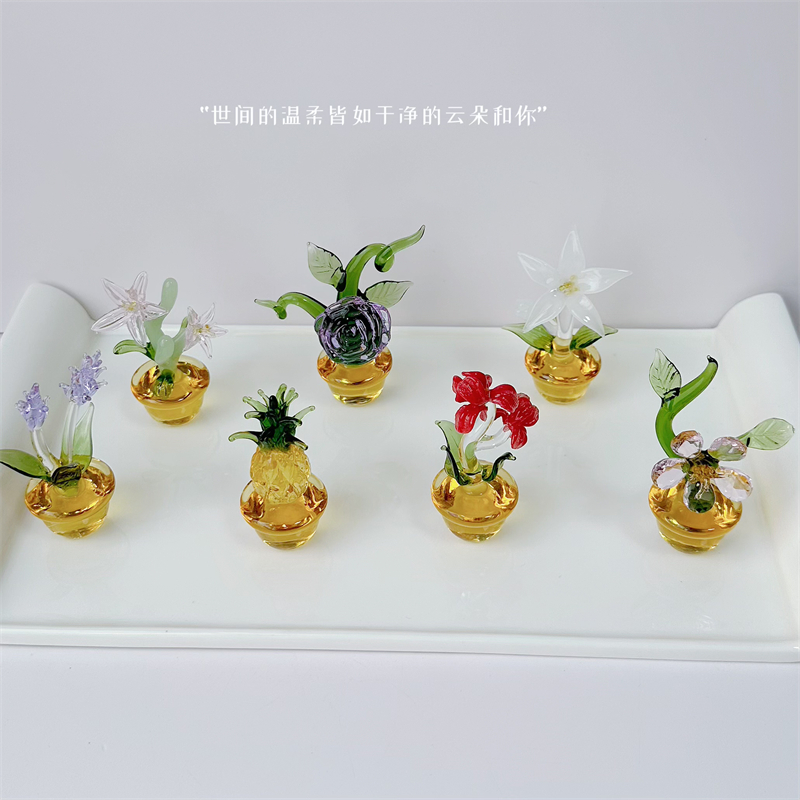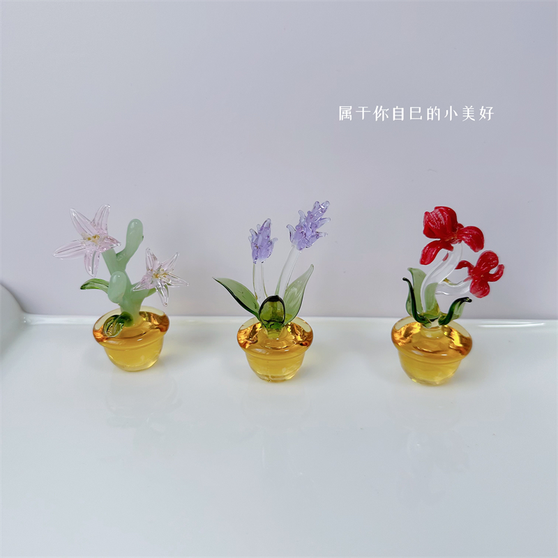 淄博琉璃鸢尾花盆栽小摆件纯手工艺品多肉家居饰品桌面办公桌仿真