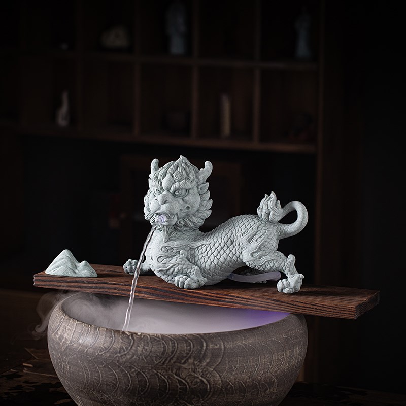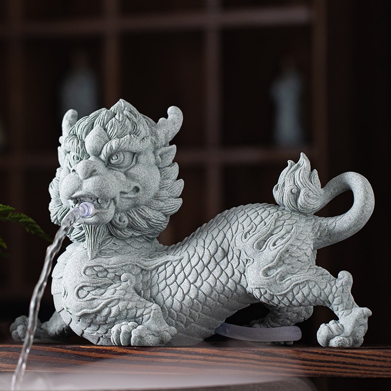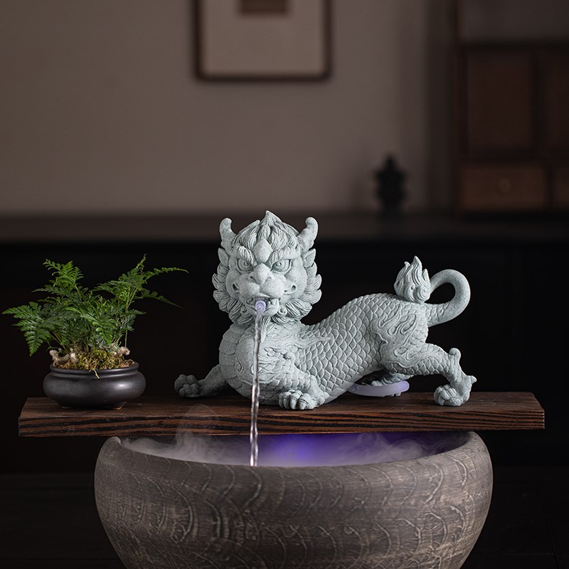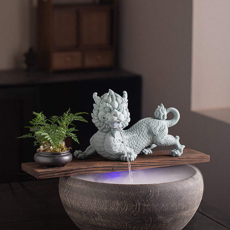 新中式招财麒麟流水古法养鱼缸循环水庭院户外室内V装饰生态缸摆