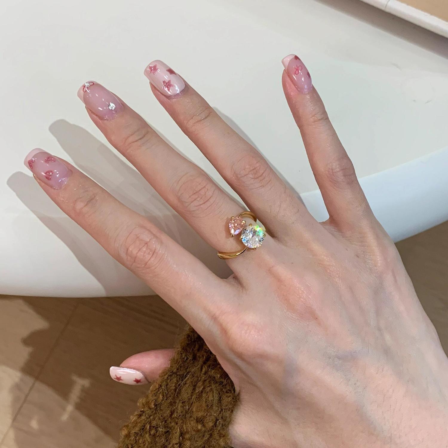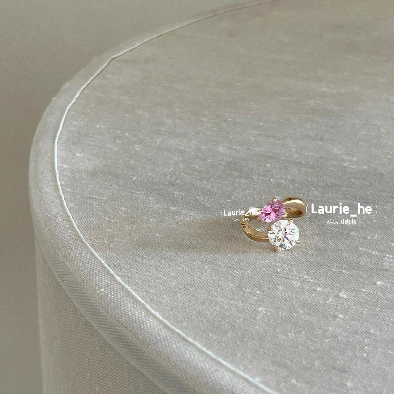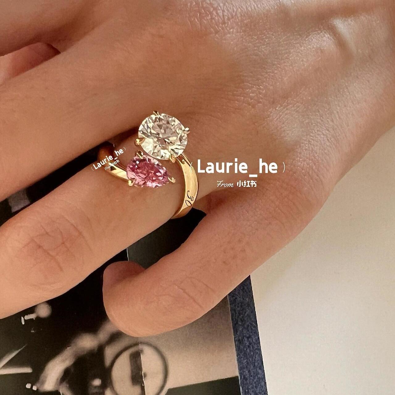 「双子玫瑰」小众纯欲风超闪粉色水滴锆石高级感开口戒指指环女
