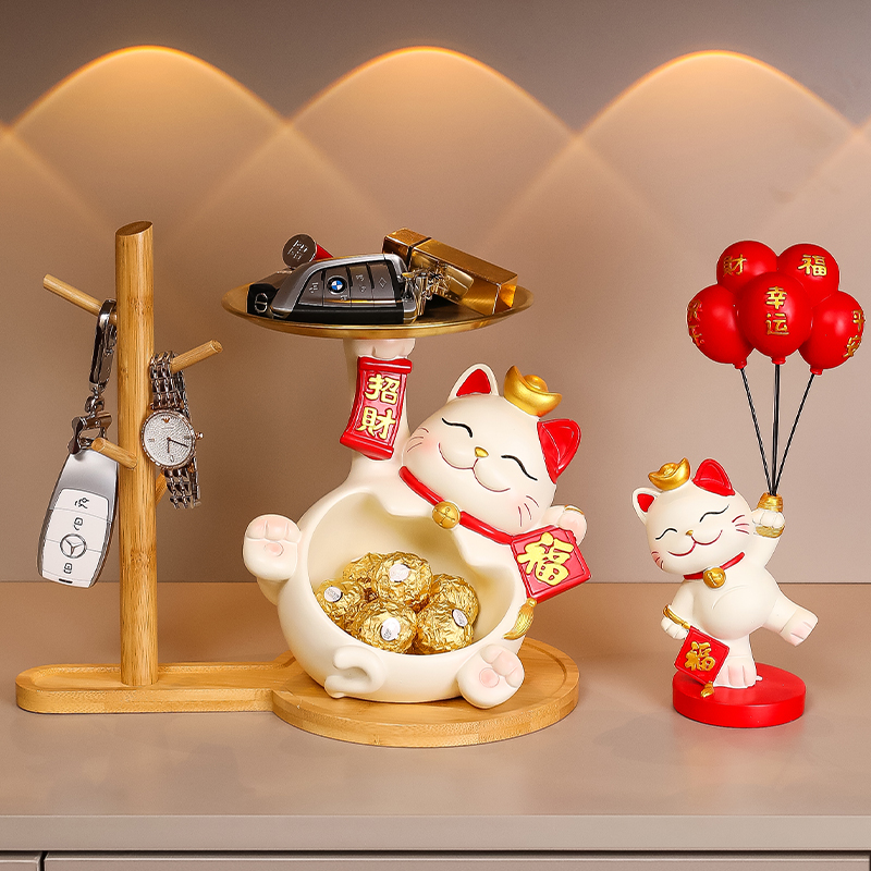 速发招财猫入户玄关收纳摆件新居乔风礼品客厅装饰品国迁实用摆设