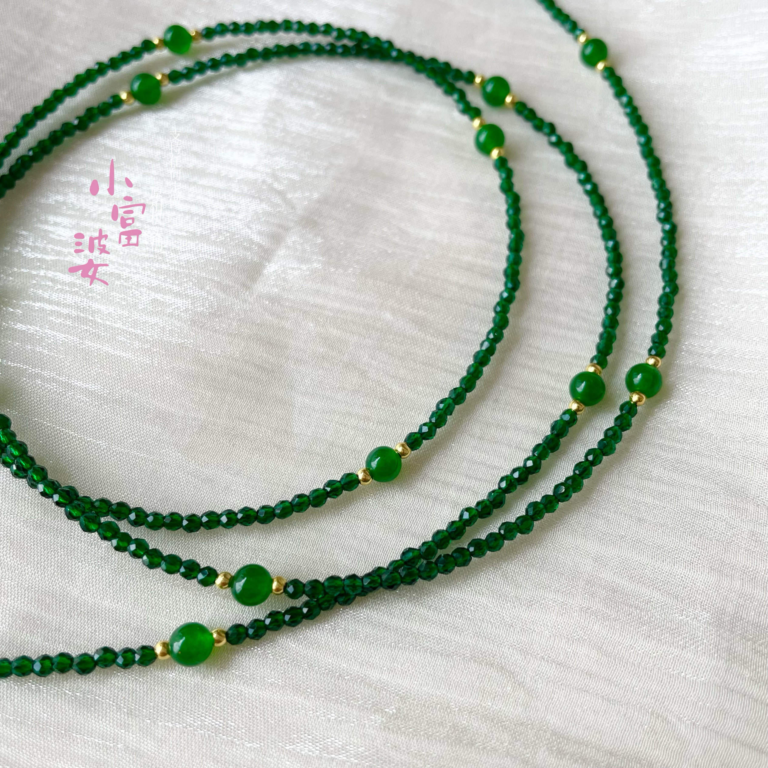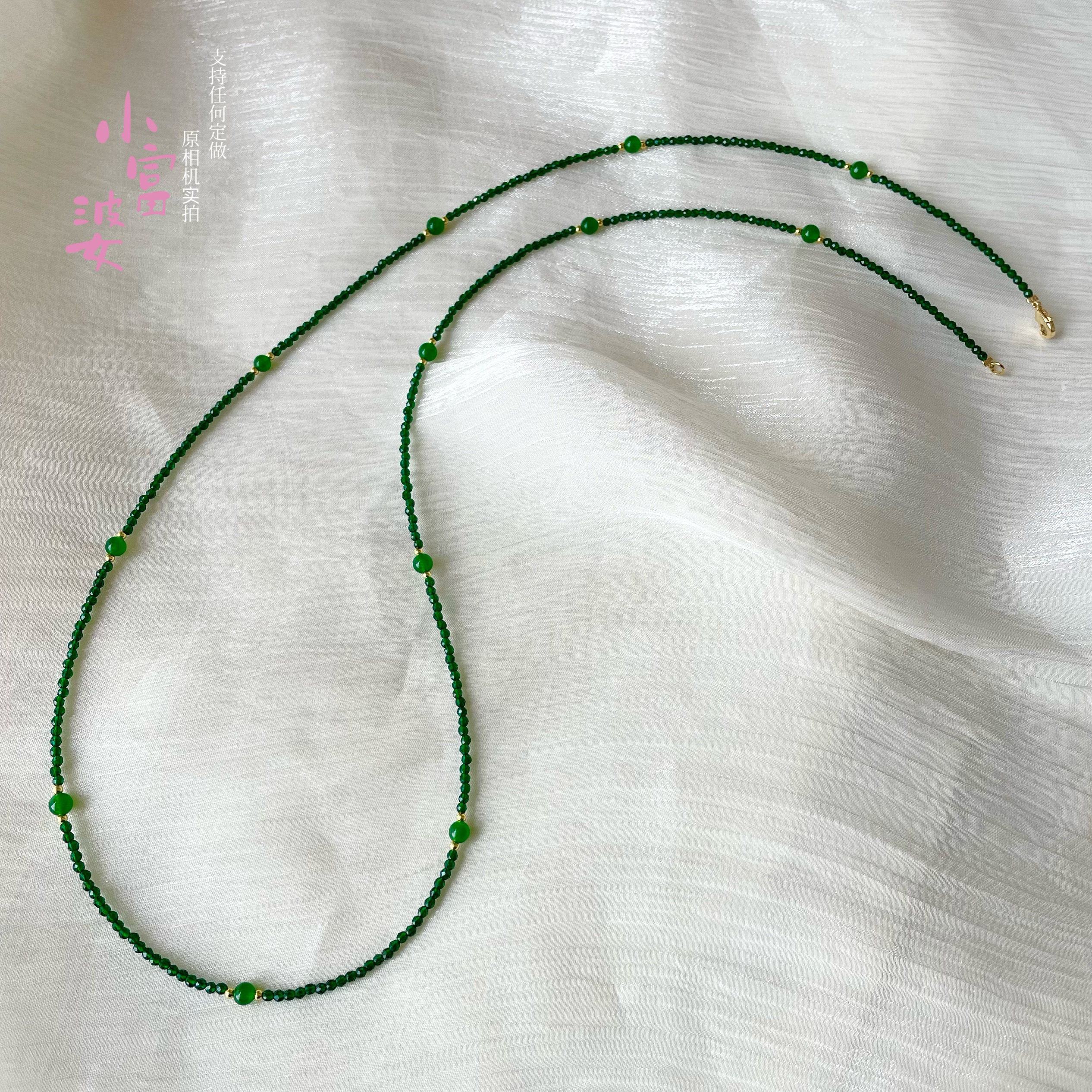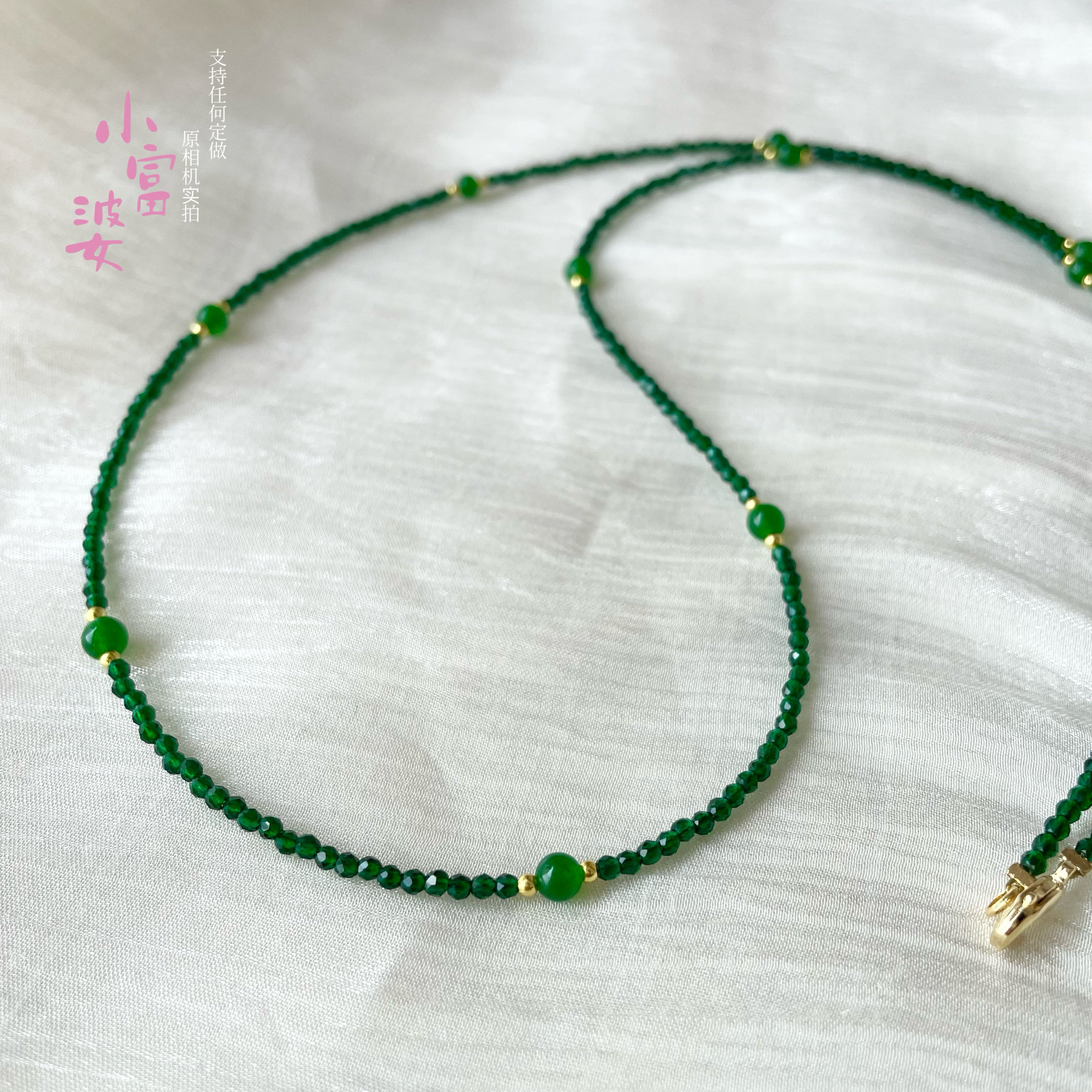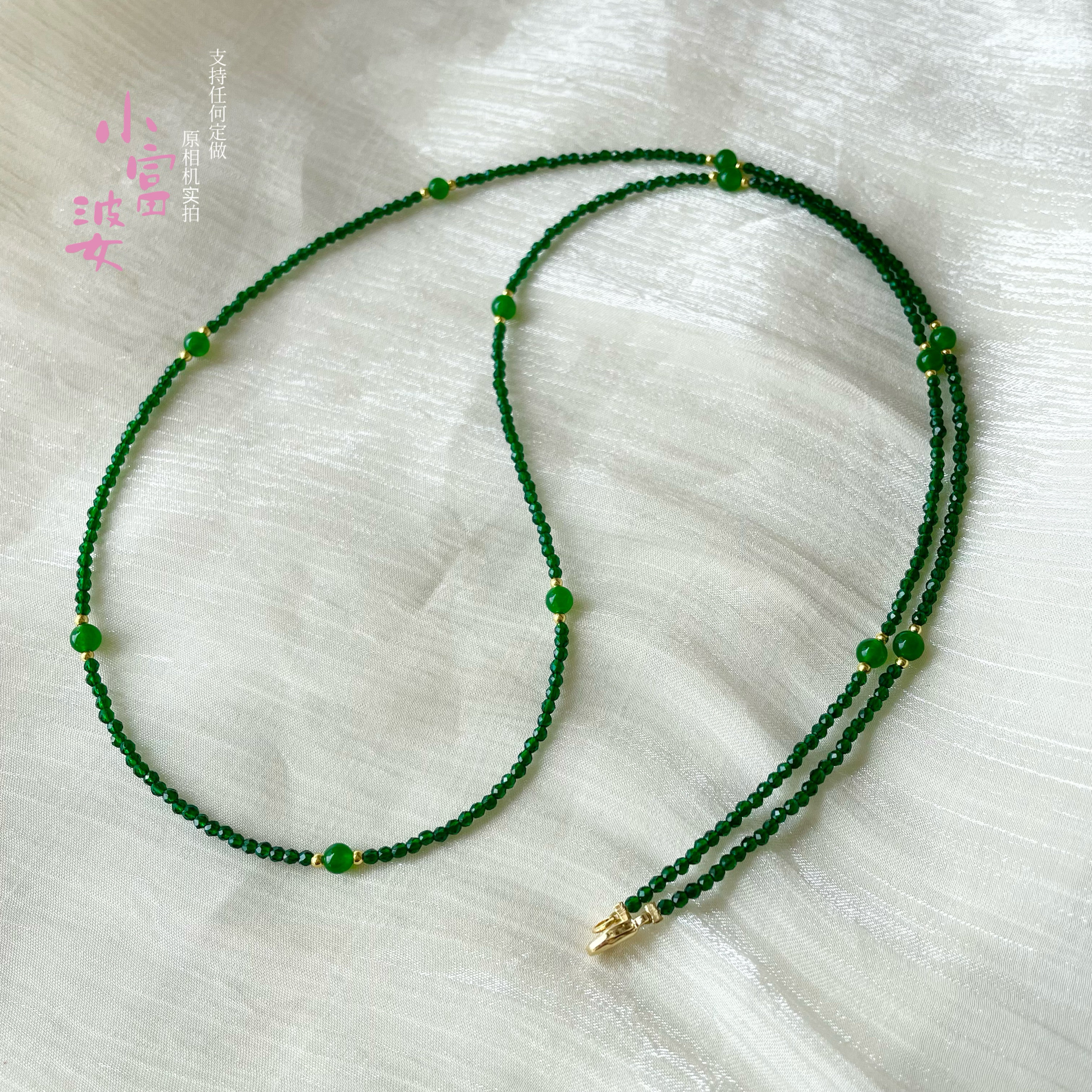 新年款祖母绿色尖晶石红玉透明水晶锁骨链项链串珠刻面2mm毛衣链
