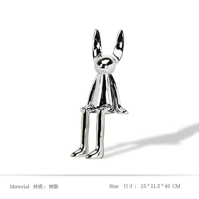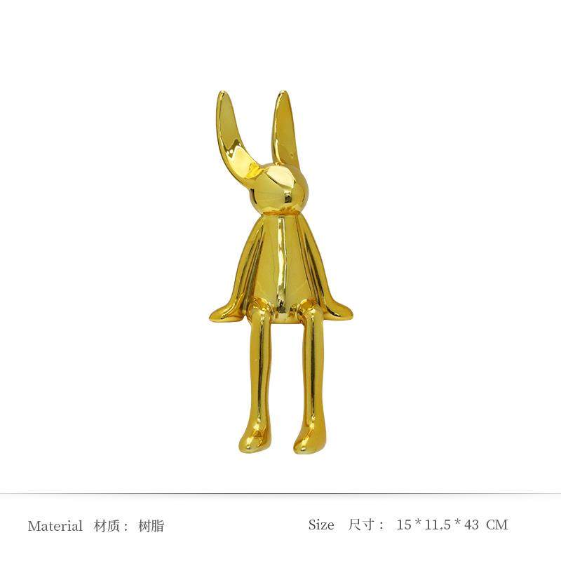 正品售现代简约轻奢金色银色坐兔子摆件样姿板处间酒店书房楼软装