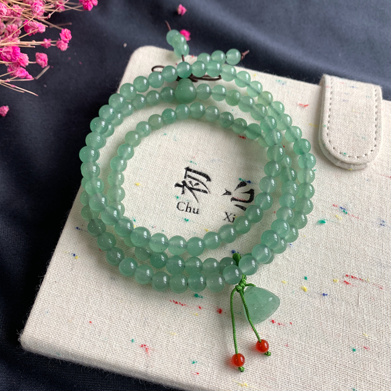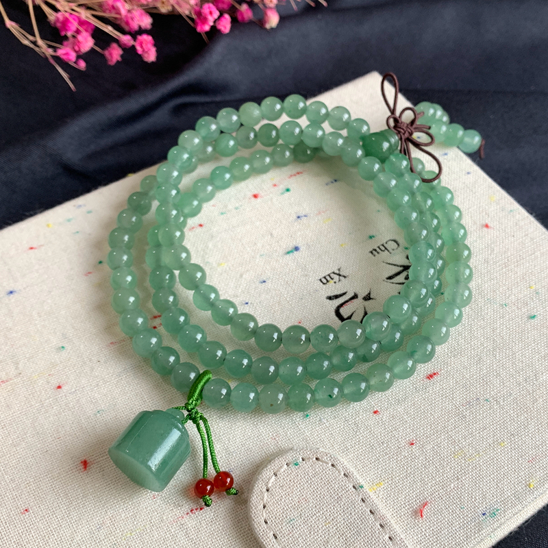 原创天然东陵玉108颗手链手串多圈款6mm绿玛瑙手钏百搭玉石项链女
