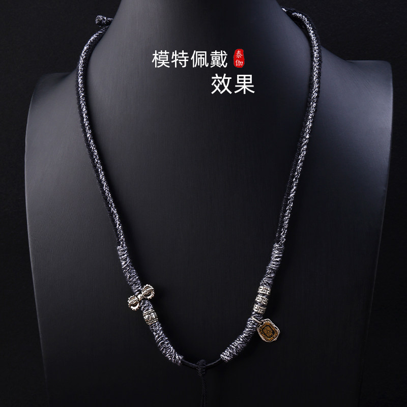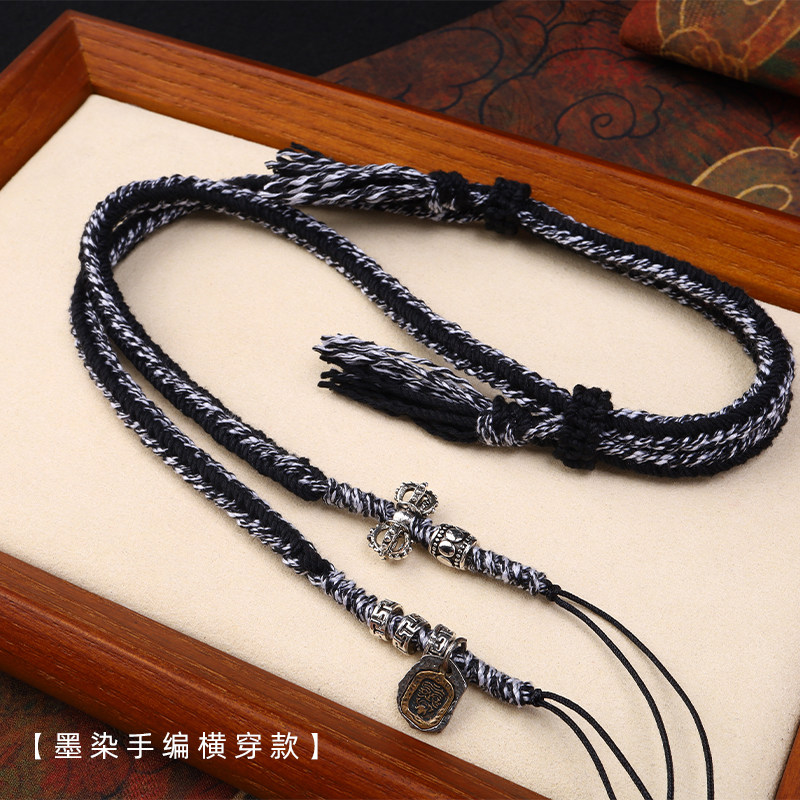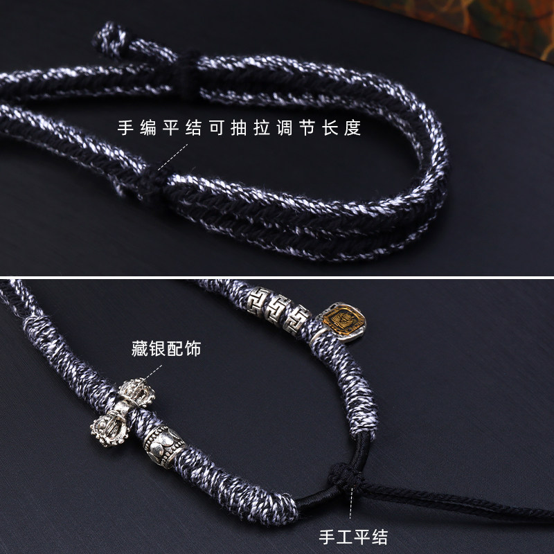 藏式手编吊坠绳黑灰色搭配降魔杵唐卡网红同款藏银挂绳墨染 TG152