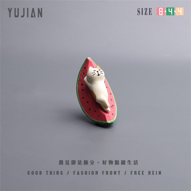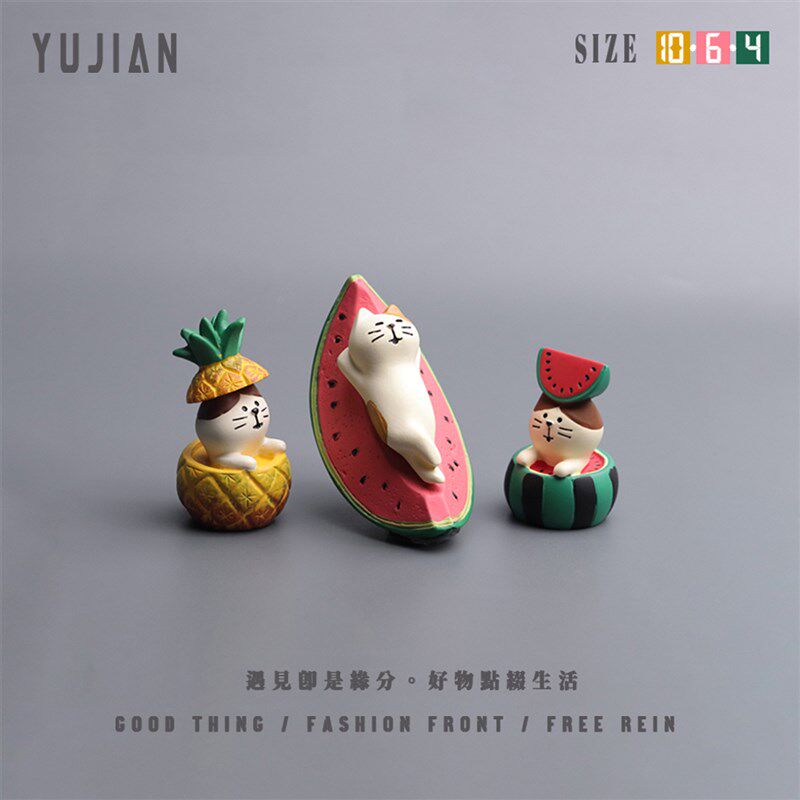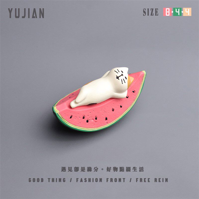 遇见丨躺西瓜猫凤梨系列创意可爱桌面车载摆件手工手绘有趣礼品