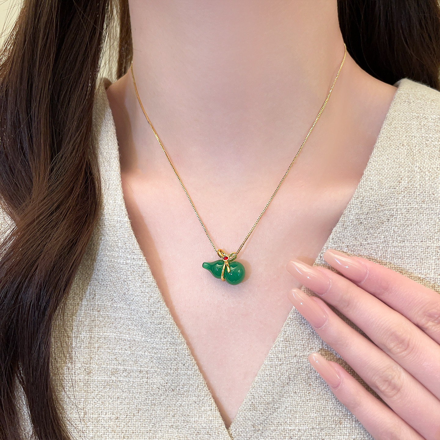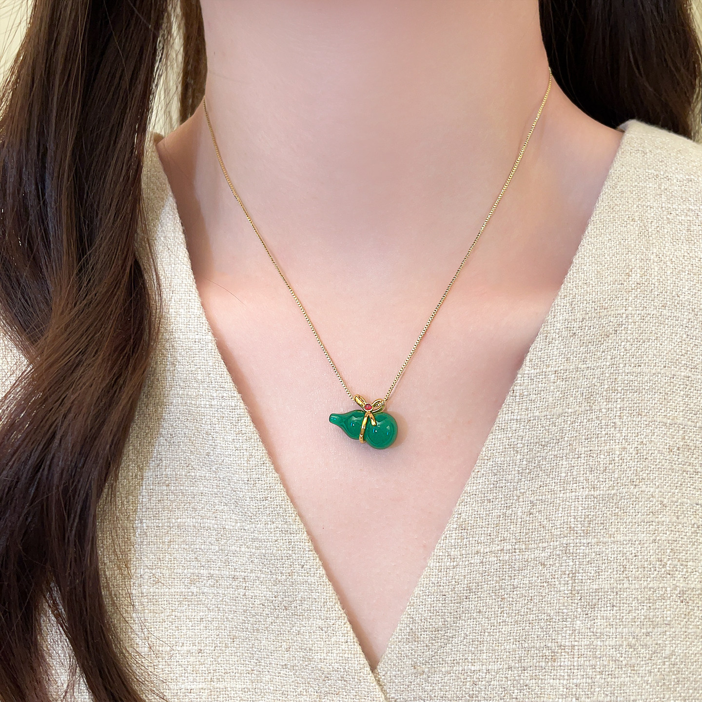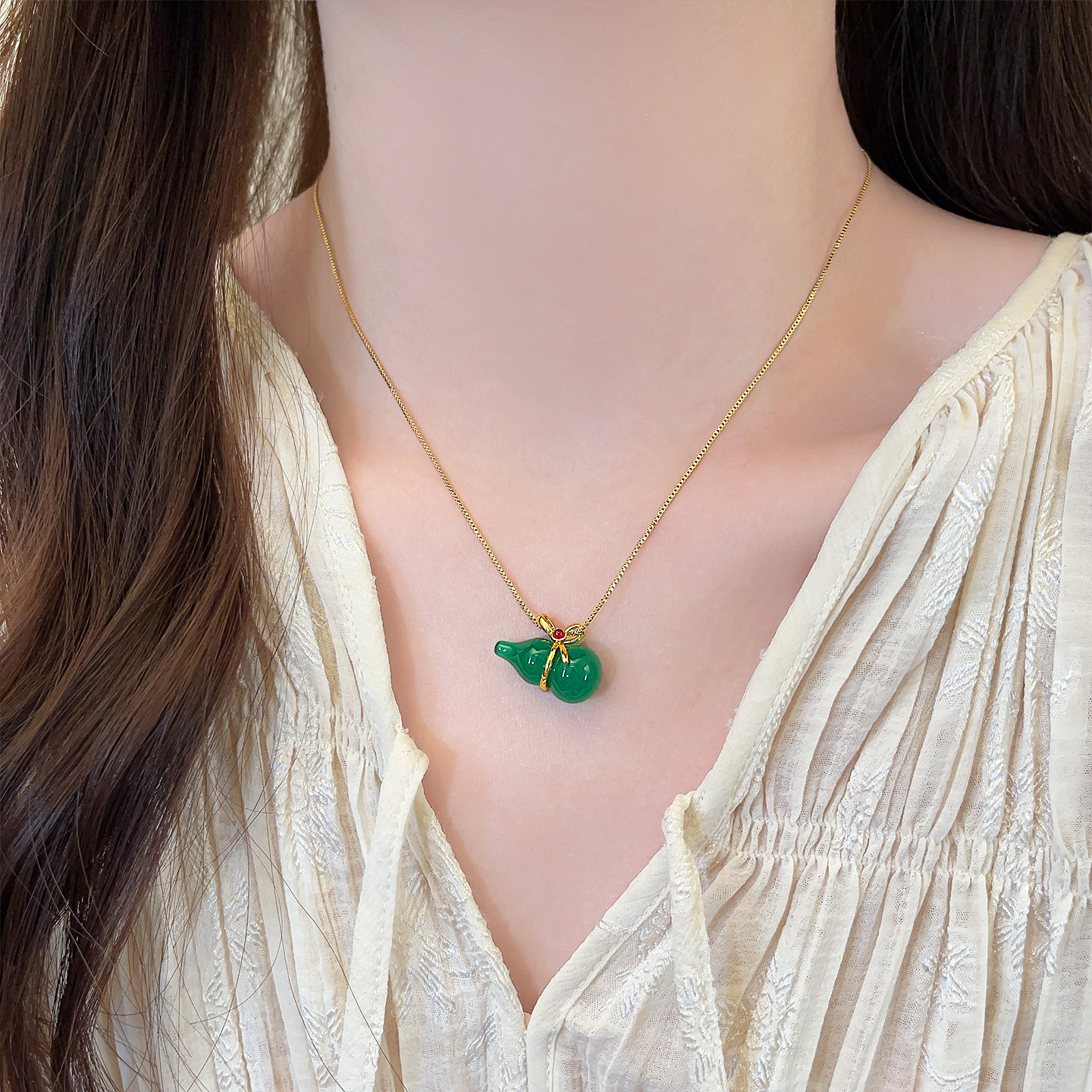新中式绿色玉石葫芦吊坠项链女款高级感轻奢小众配饰2026新款颈链