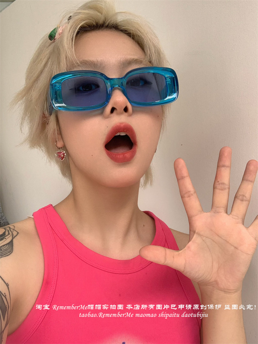 【潮流小框】欧美辣妹亮色系墨镜女时髦蓝色太阳镜网红街拍眼镜男