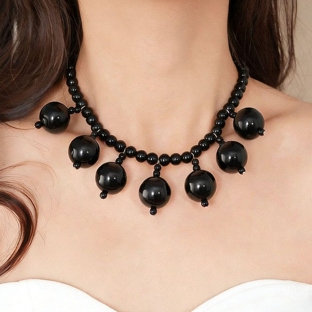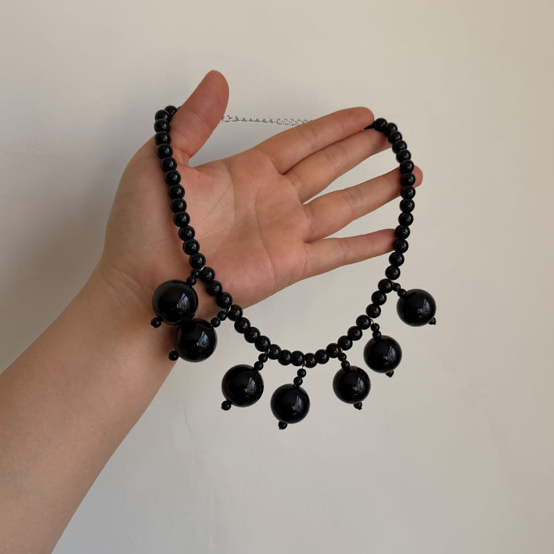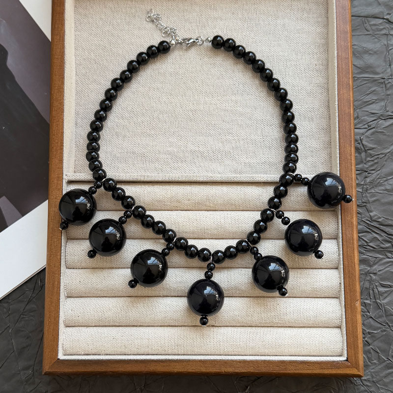 法式复古夸张黑色圆球吊坠锁骨链轻奢高级独特个性精致毛衣链配饰