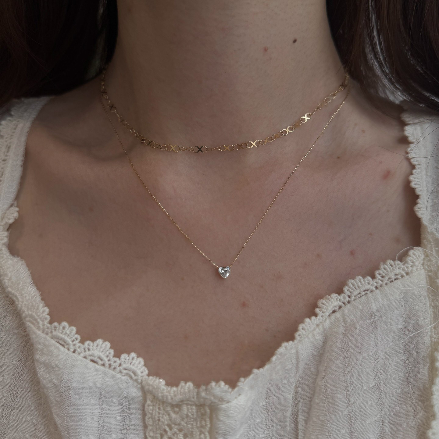仿莫桑钻爱心吊坠项链2026新款轻奢小众高级感8字素叠戴锁骨颈链