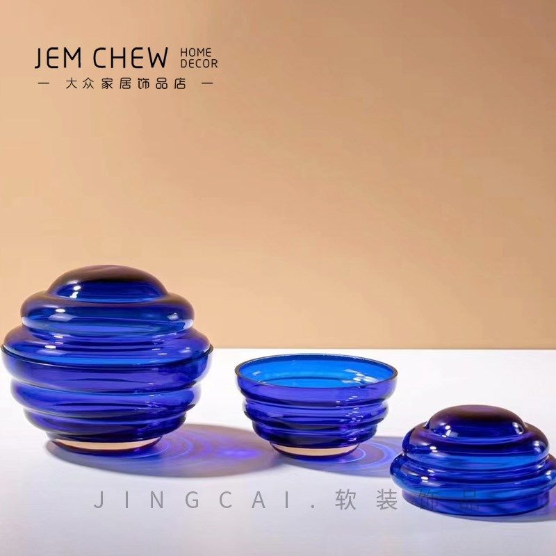 现轻奢白色蓝罐款储物多玻纳玄关电视柜收璃盒创意桌面摆件