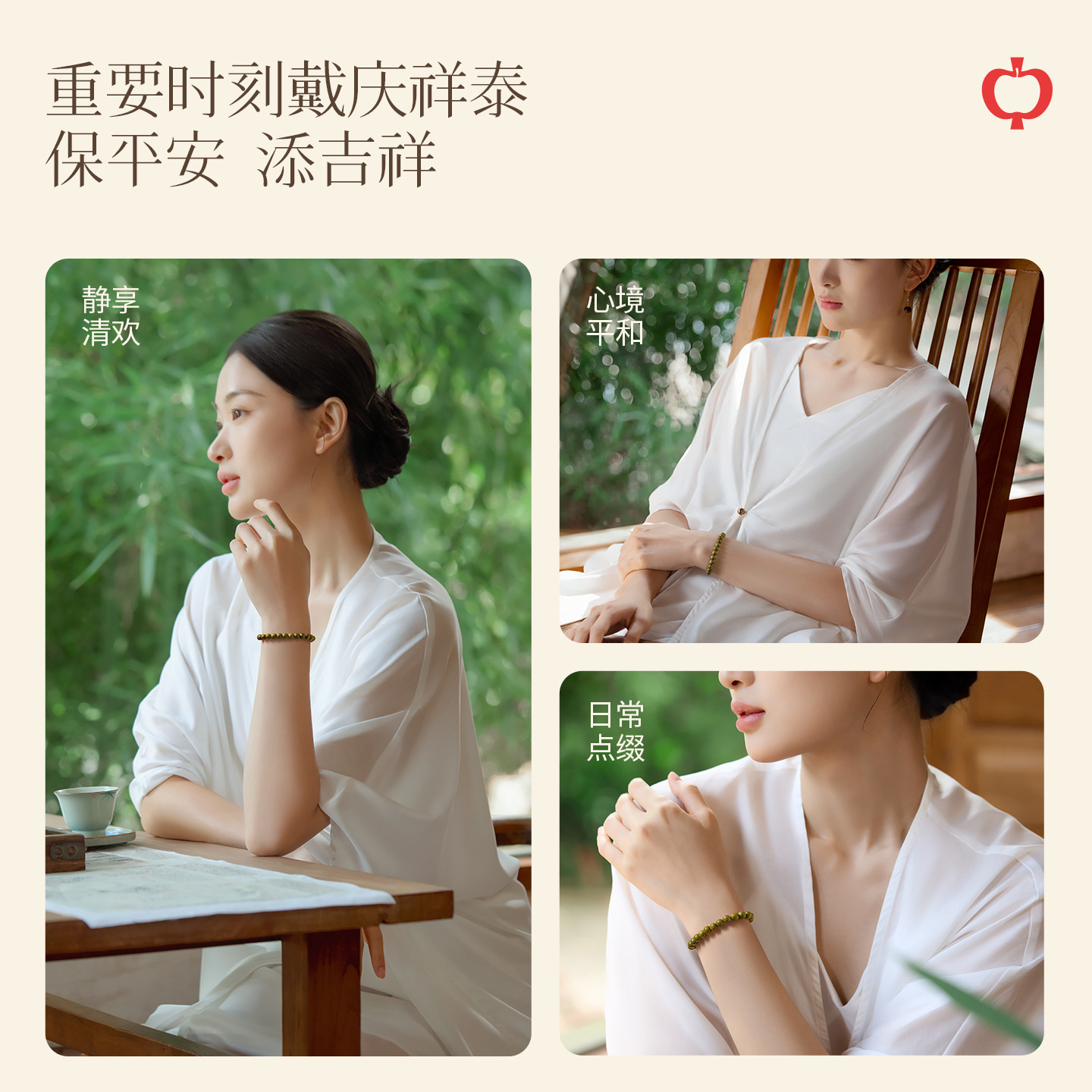 庆祥泰天然绿檀木手串女款官方旗舰店沉香木头手链檀香男木质饰品