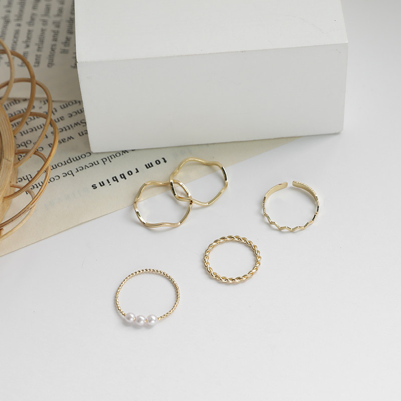 日韩简约波浪形组合珍珠戒指女ins潮时尚个性小众设计网红尾戒女