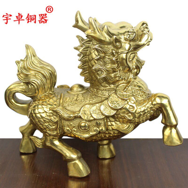 宇卓铜器 纯铜麒麟黄铜麒麟黄色麒麟一对工艺品摆件