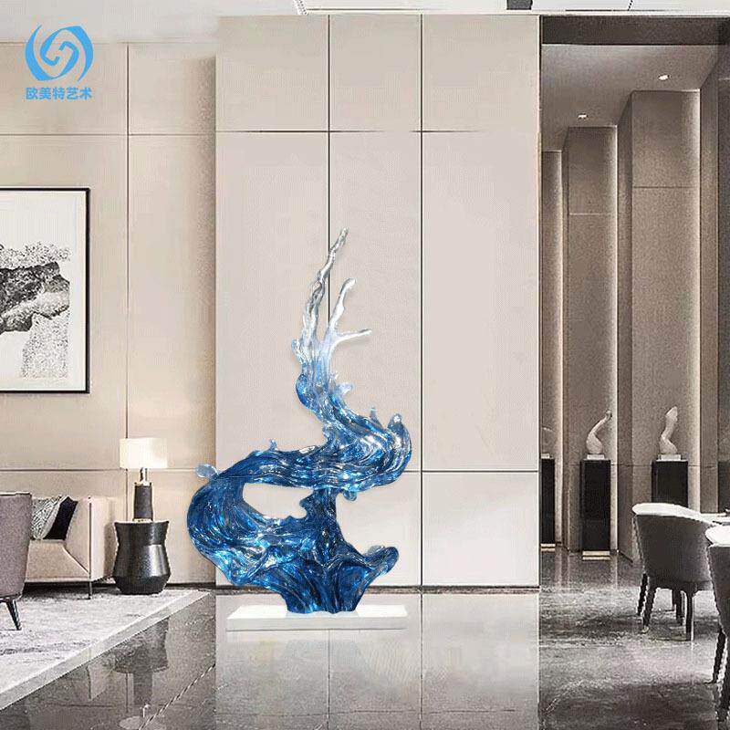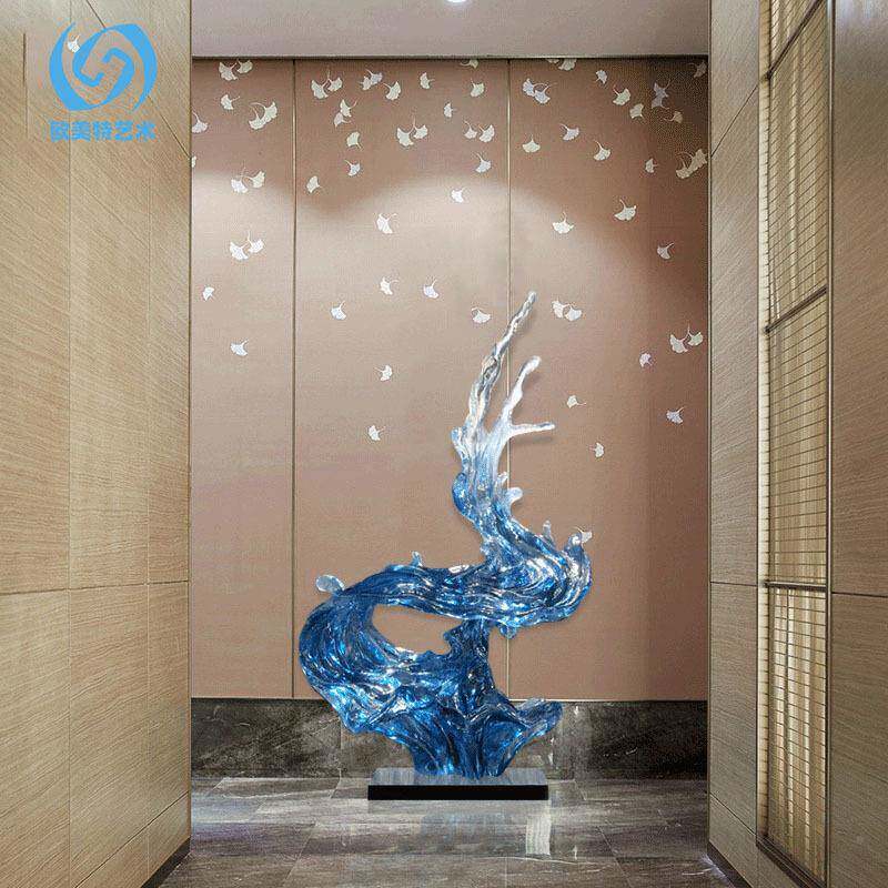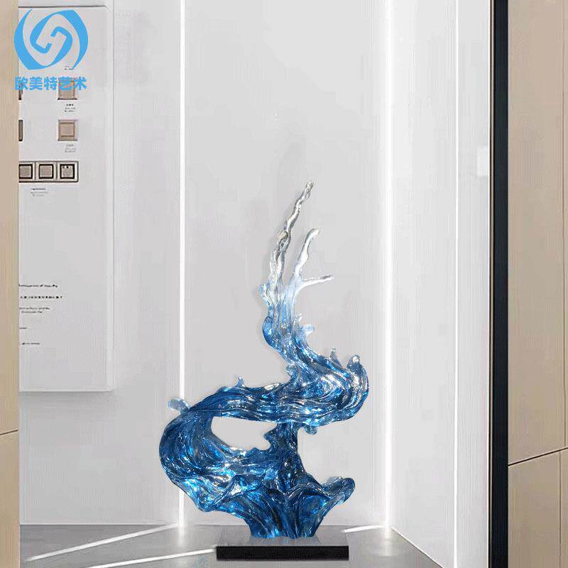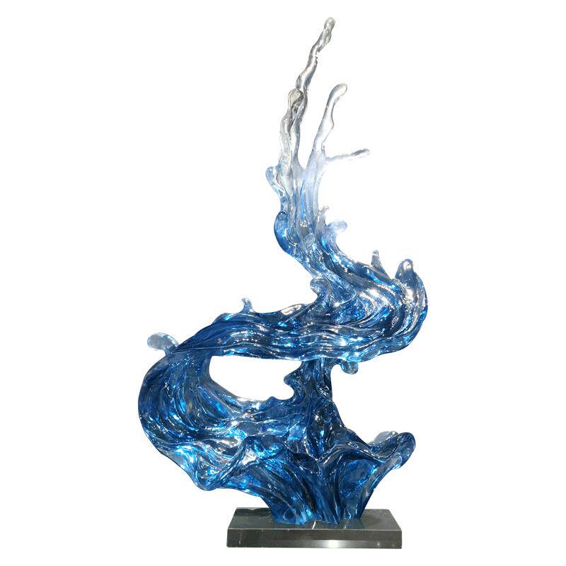 代蓝色透明件浪花蓝色飞流落房地现雕塑摆酒店大厅样板玄关别墅售