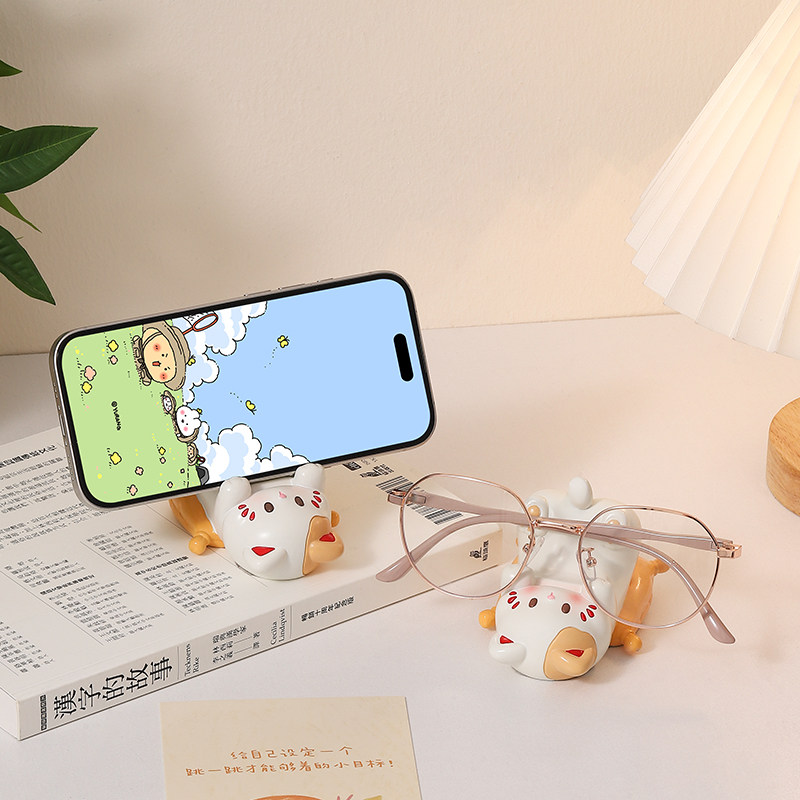 可爱卡通小猫眼镜放置架桌面手机支架摆件办公桌好物女生工位实用