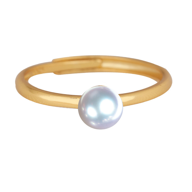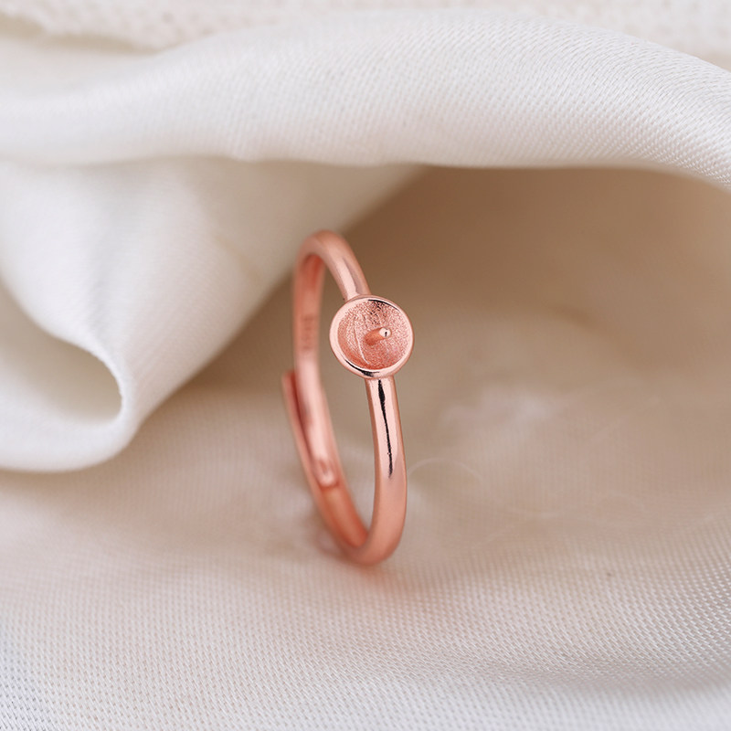 S925纯银戒指空托日韩未镶嵌珍珠蜜蜡琥珀圆珠银饰银托开口戒托女