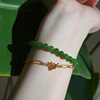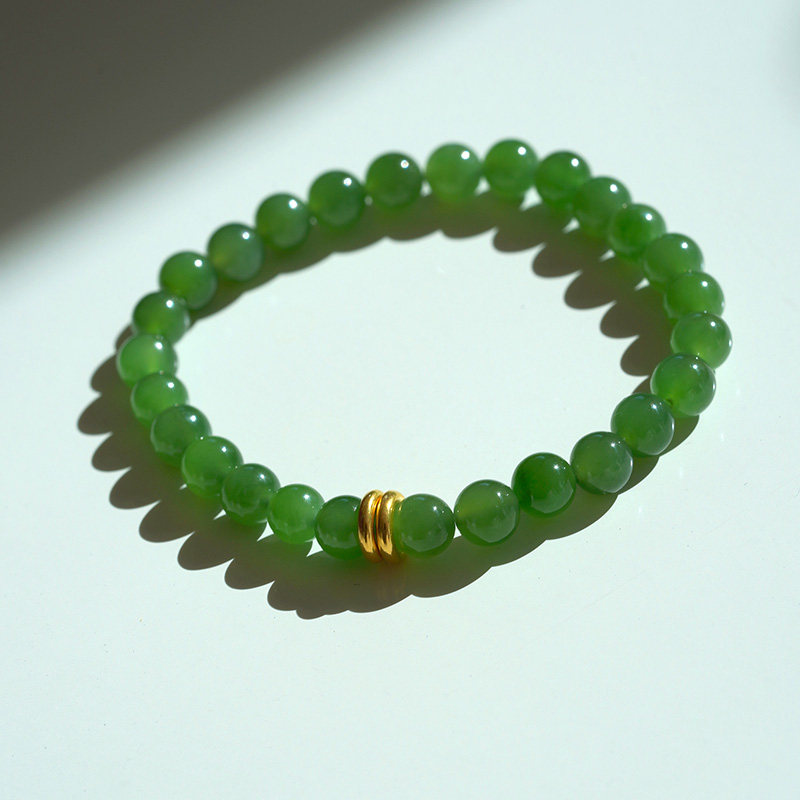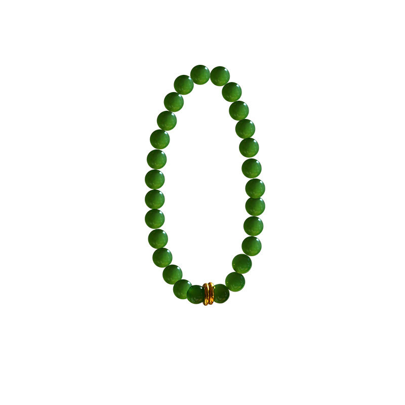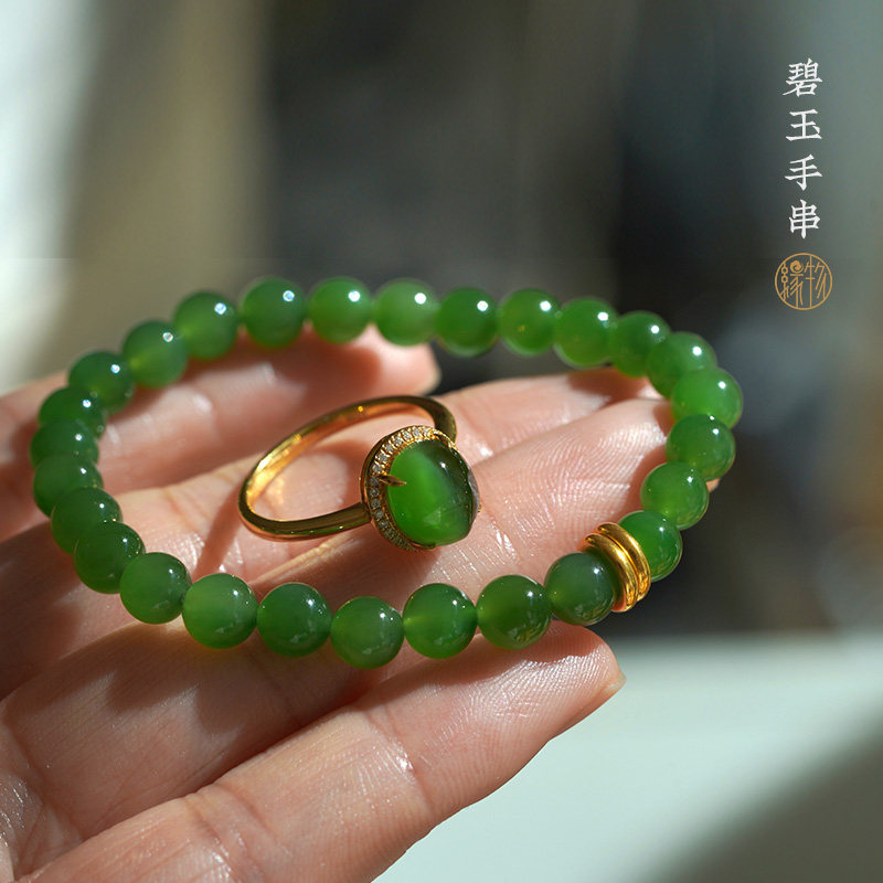缘物珠宝天然和田玉碧玉手串女 圆珠手链辣绿冰底24k金手串手饰