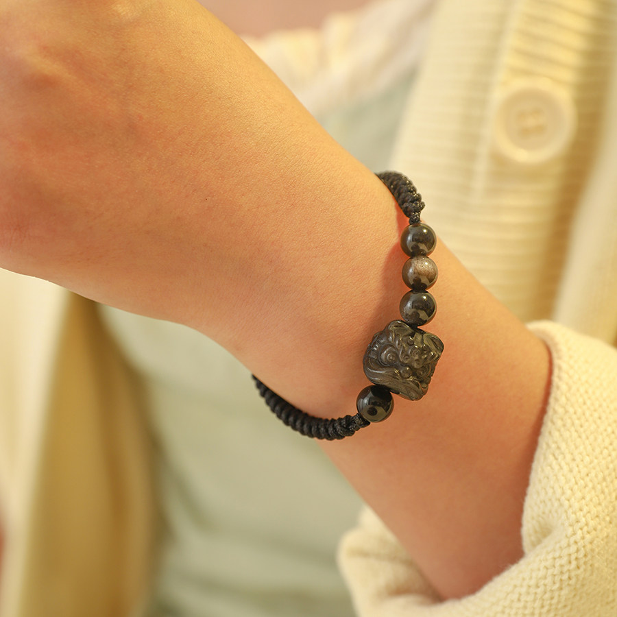 十里间【手工编织-黑曜石】文艺古风新中式醒狮手链无性别项链