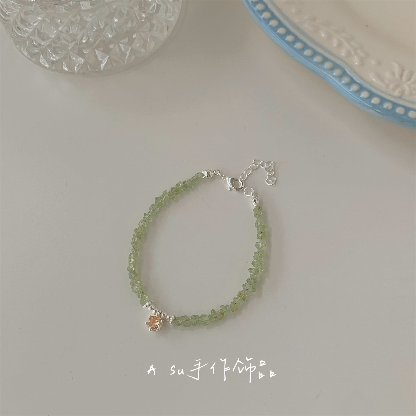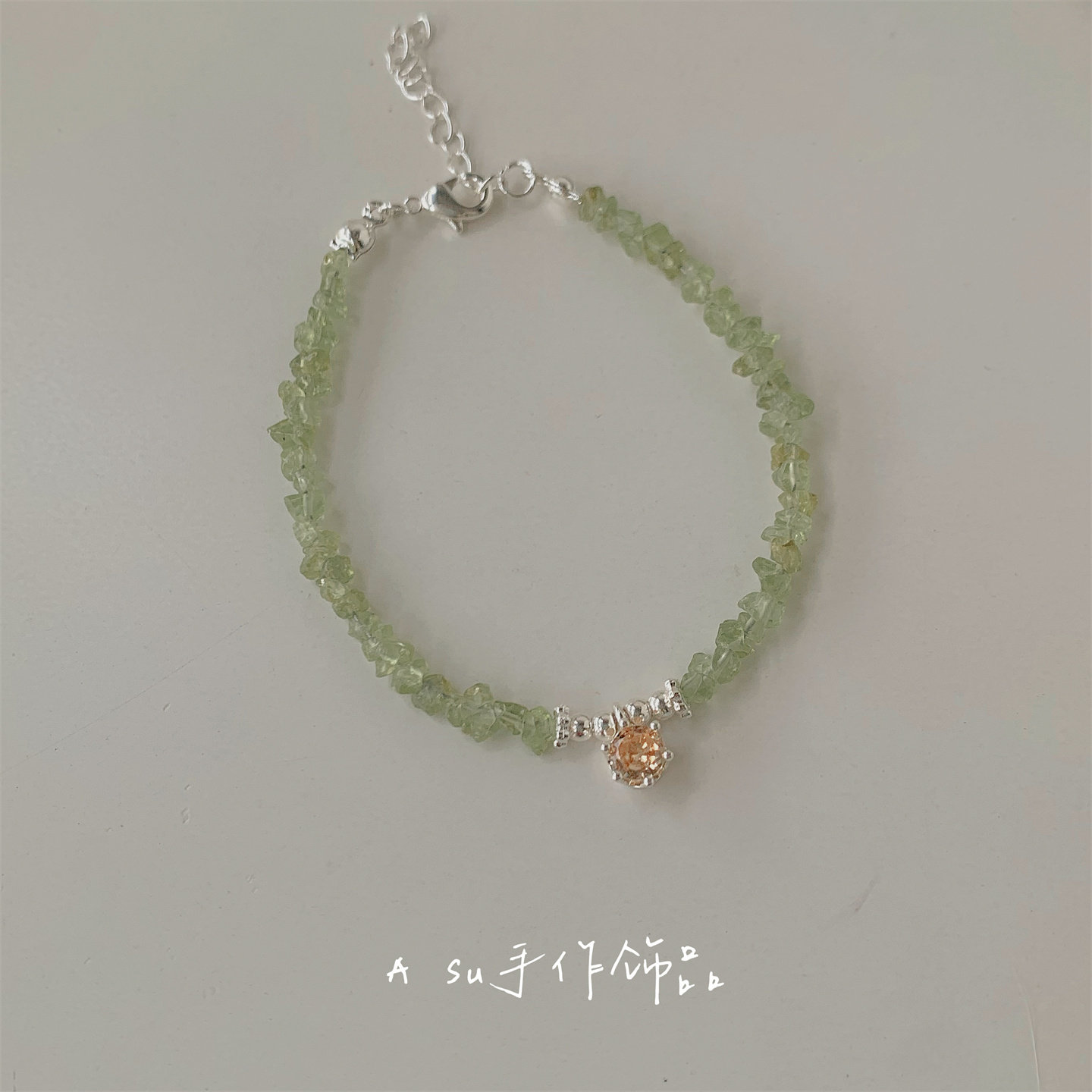 【满25包邮】天然橄榄晶碎石手链绿色天然石锆石手串手饰春夏新款