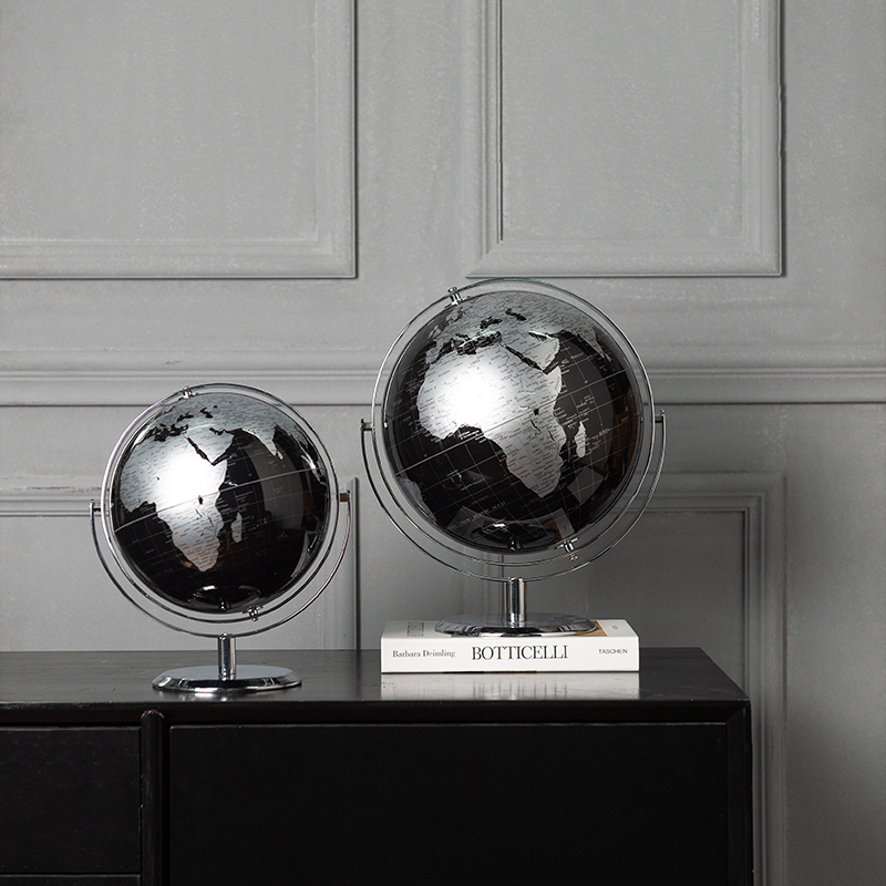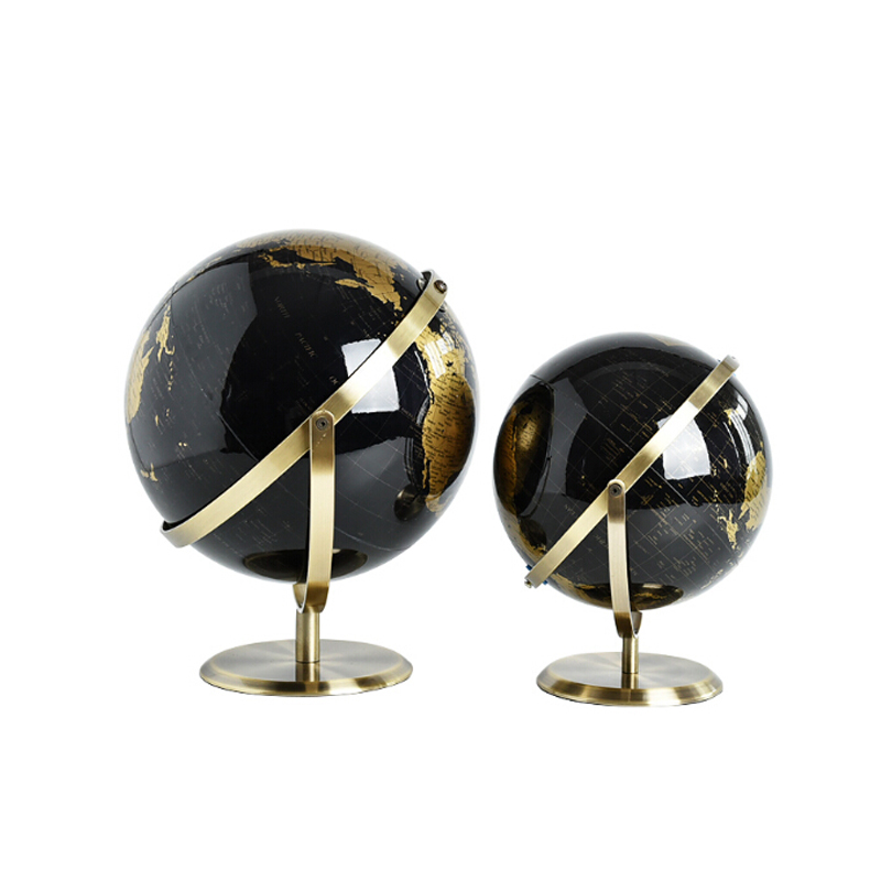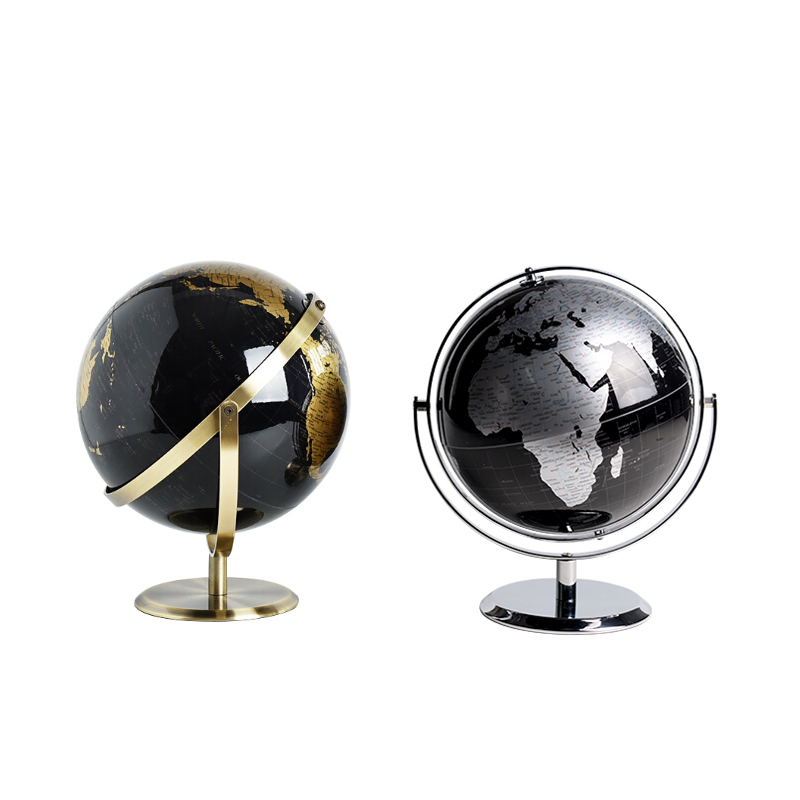 现代轻奢金银黑色地球仪摆件简约样板间书房客厅玄关办公室装饰品