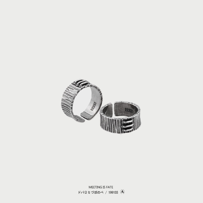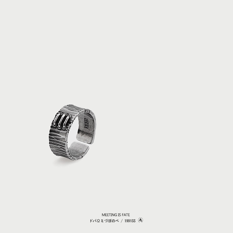 PDSTYLE 复古霸气三条杠戒指男士个性水波纹宽版开口指环高级感潮