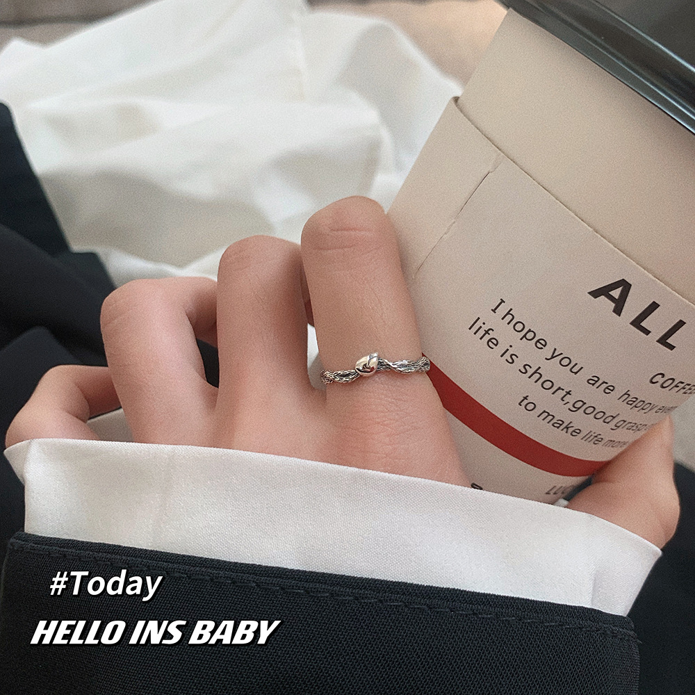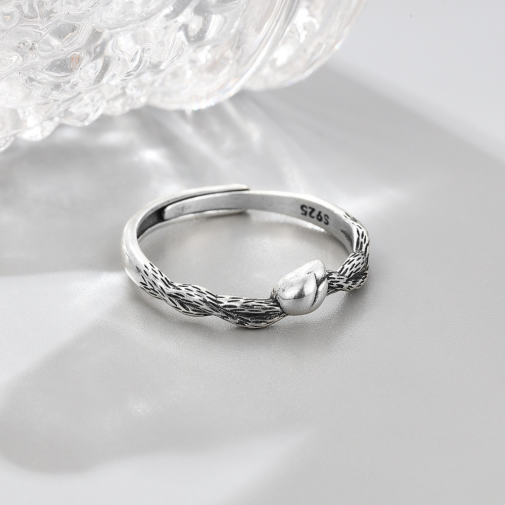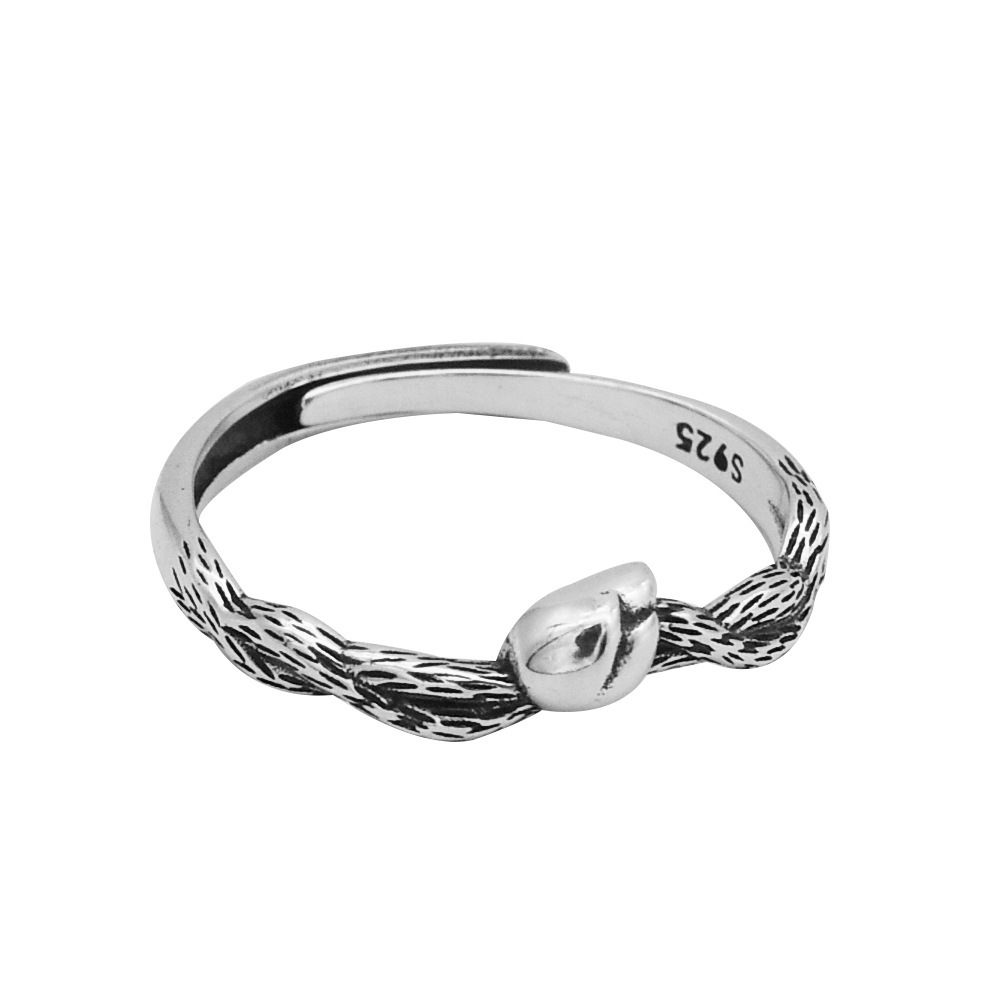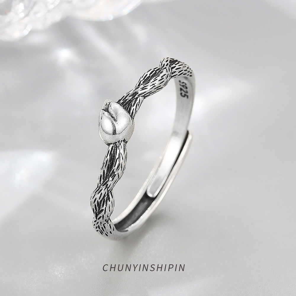 ins小众复古饰品925纯银花蕾指环韩国东大门个性开口戒指食指戒女