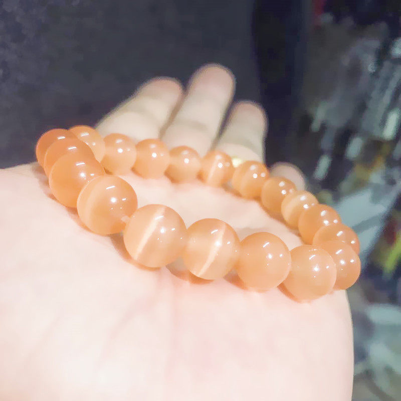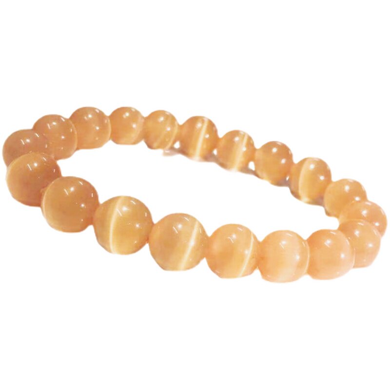 水晶橙色猫眼10mm桔红橘色香槟色猫眼石手链直播款百搭少女情怀