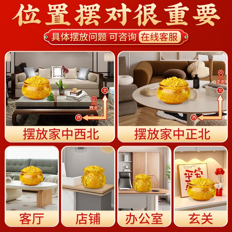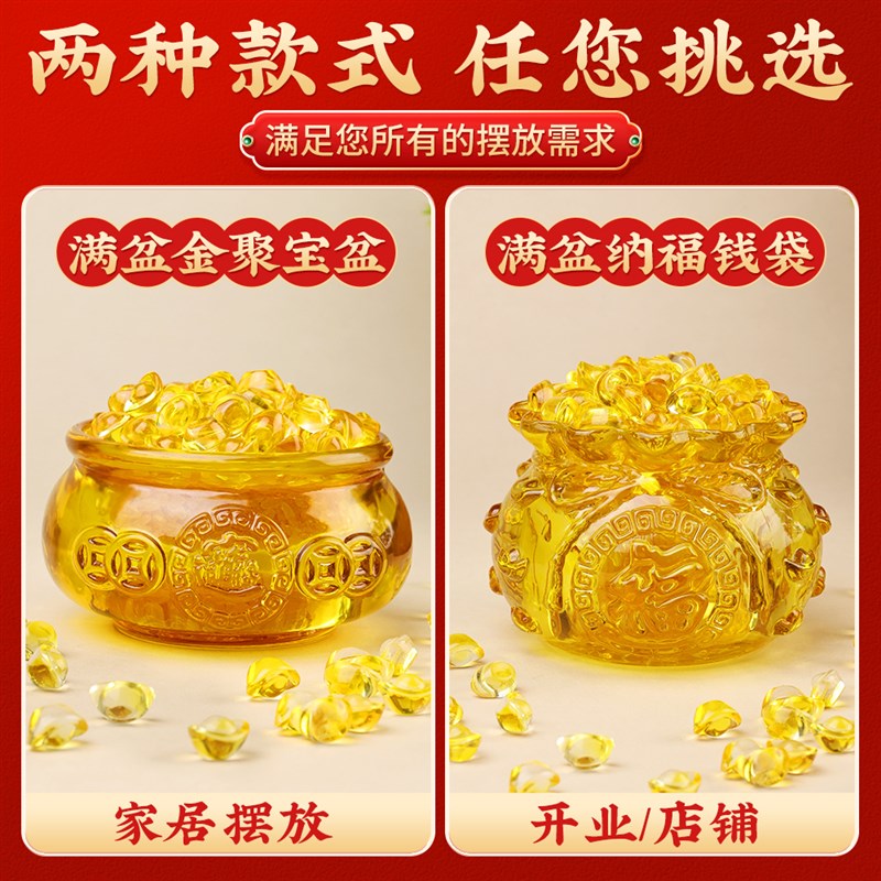 速发聚宝盆摆件聚财黄水晶琉璃元宝财神桌面办公室门开业礼物