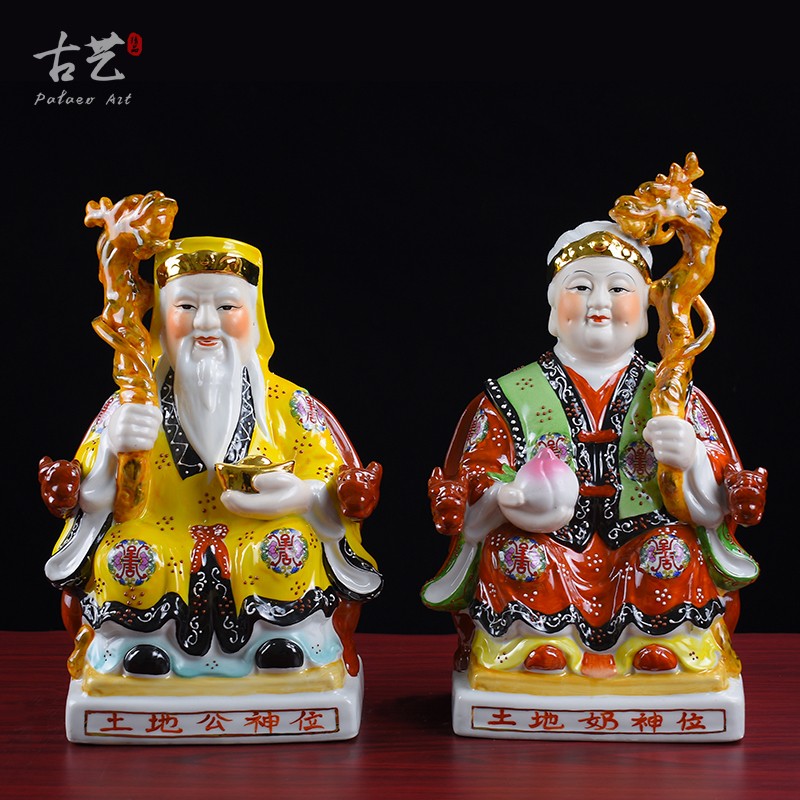 陶瓷土地公土地婆神像福德正神土地爷土地奶供奉家用镇宅佛像摆件