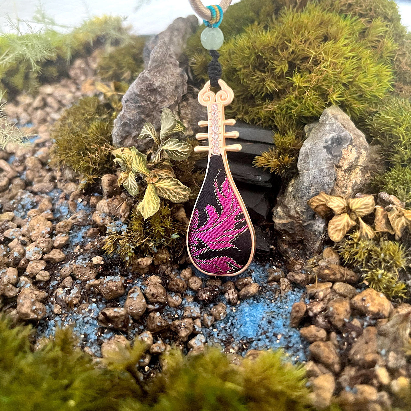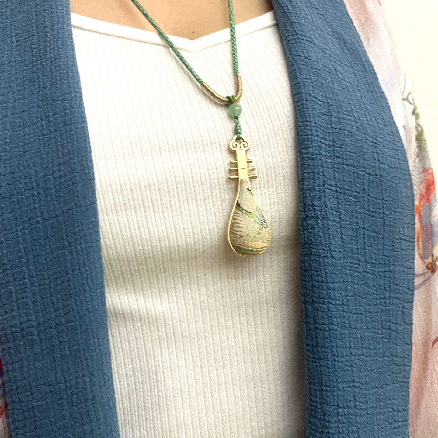 纯手工非遗宋锦琵琶古风吊坠项链汉服古装中式挂饰吊坠款