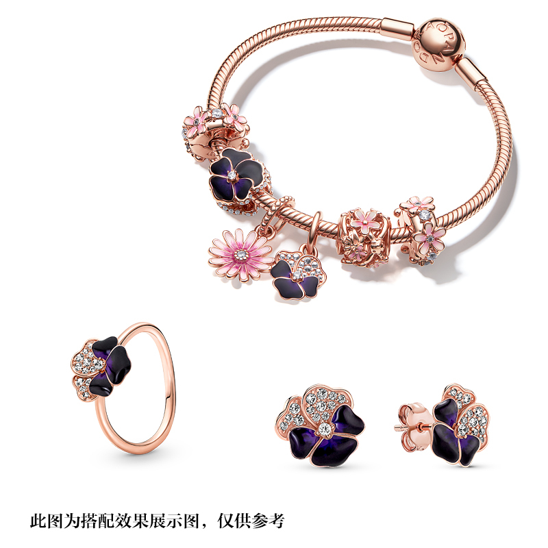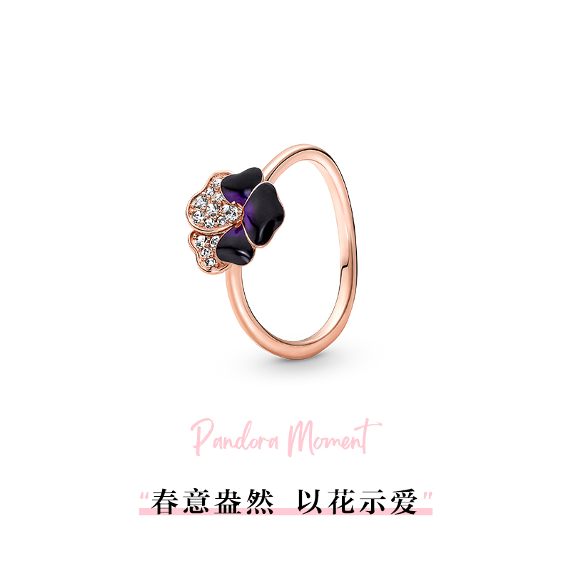 Pandora潘多拉奥莱深紫色三色堇戒指玫瑰金女复古